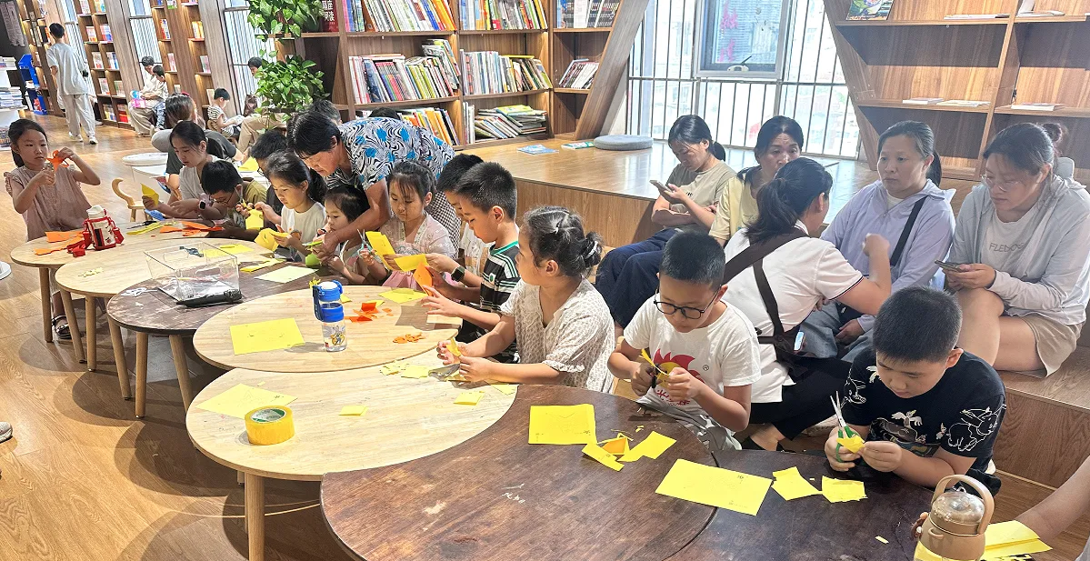 活动中,书店工作人员还详细介绍了七夕的传统习俗和美食。最受欢迎的环节当属习俗模仿体验。孩子们在工作人员的指导下,学着穿针引线,模拟古代女子乞巧的场景。将彩纸剪成风筝形状,表达自己的愿望。还两人一组,模仿牛郎织女鹊桥相会的场景。现场欢声笑语不断,传统文化在游戏中悄然传承。在活动的最后,孩子们用稚嫩的语言表达着对七夕节的感受和对父母的感谢,并把象征感恩的康乃馨献给家长。一位家长说:“这样的活动很有意义,让孩子在故事和游戏中了解传统文化,比单纯说教有效多了。”