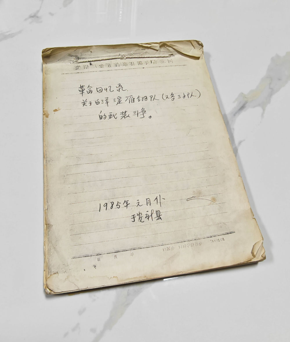 曾任雁翎队指导员的槐泽民晚年写的“革命回忆录”。新华社记者 苏凯洋 摄