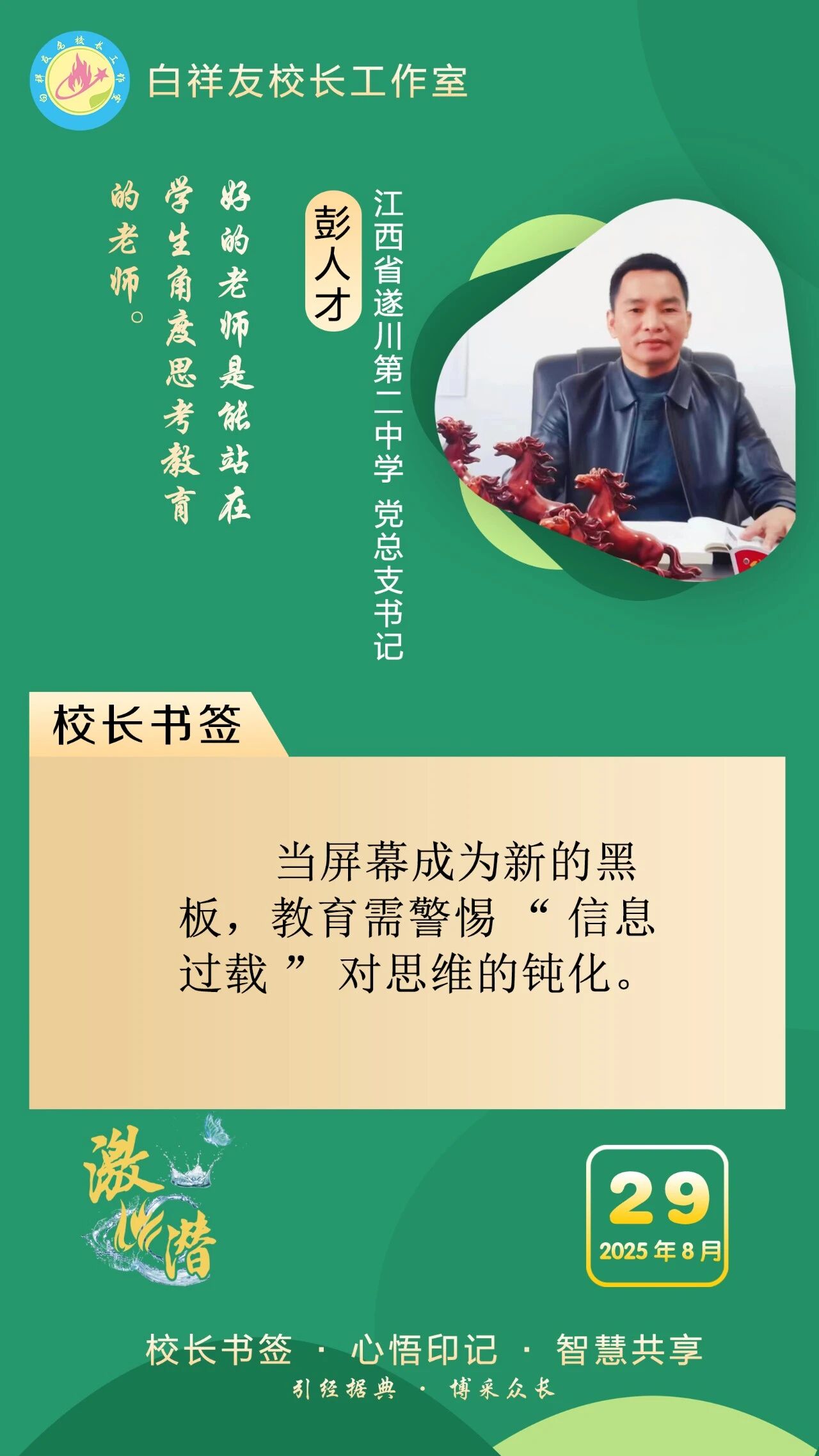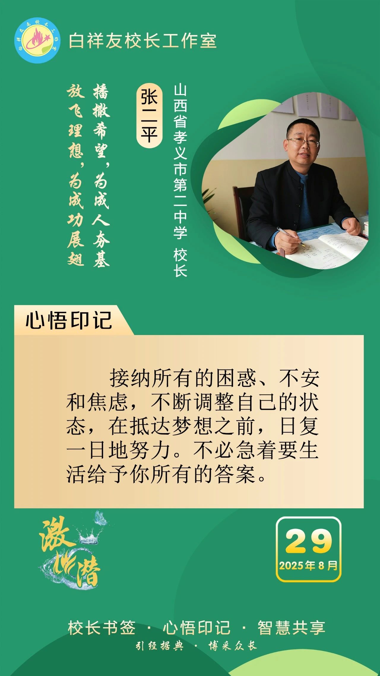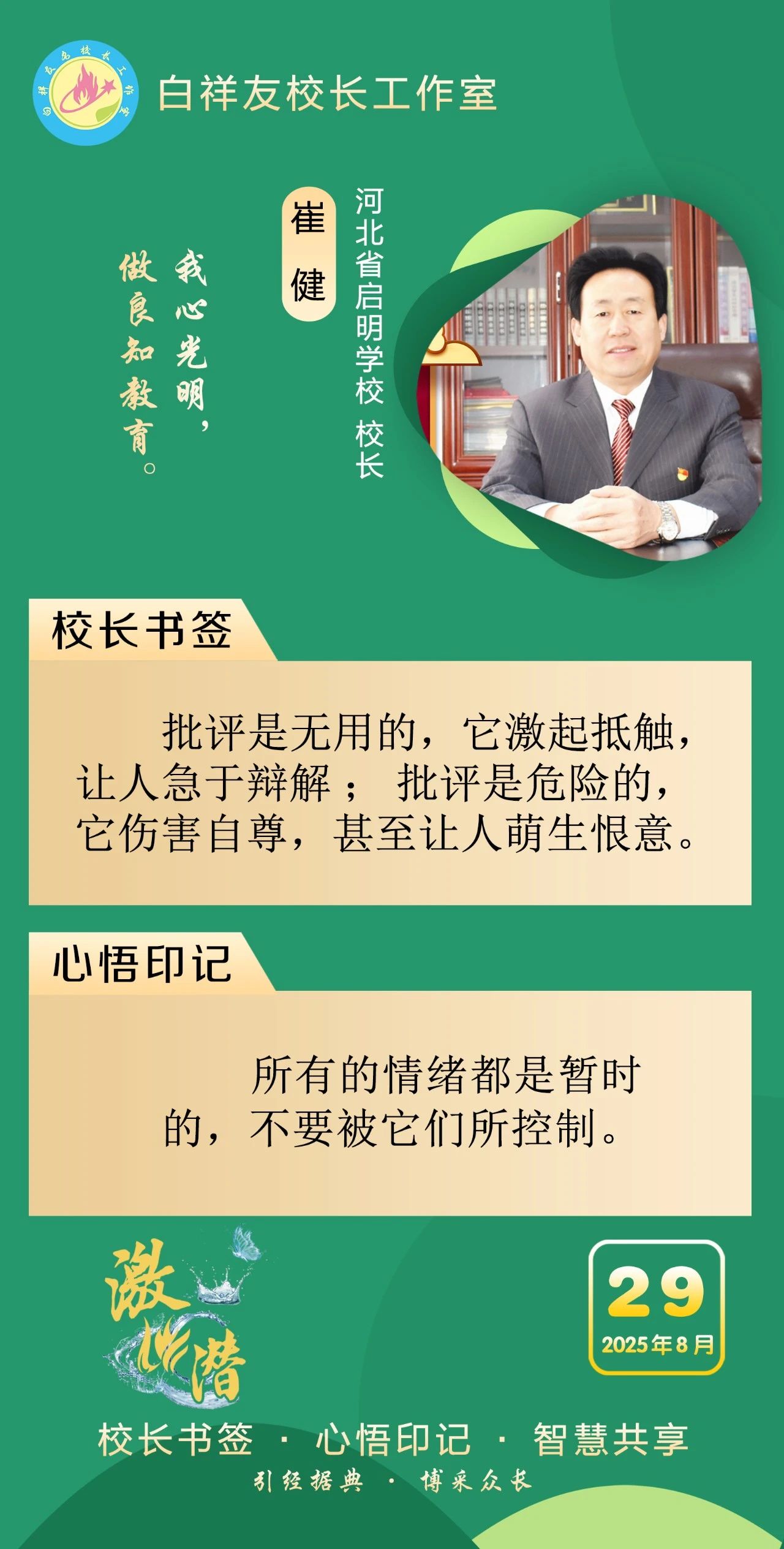 “白祥友校长工作室”成立于2019年4月,是教育部“国培计划”中小学名校长领航工程、河北省首批名校长工作室,目前省内外成员校59所。工作室坚持“资源共享、智慧共融、互助共赢”理念,已成为思想碰撞的交流场,资源共享的品牌站,成果展示的辐射源。