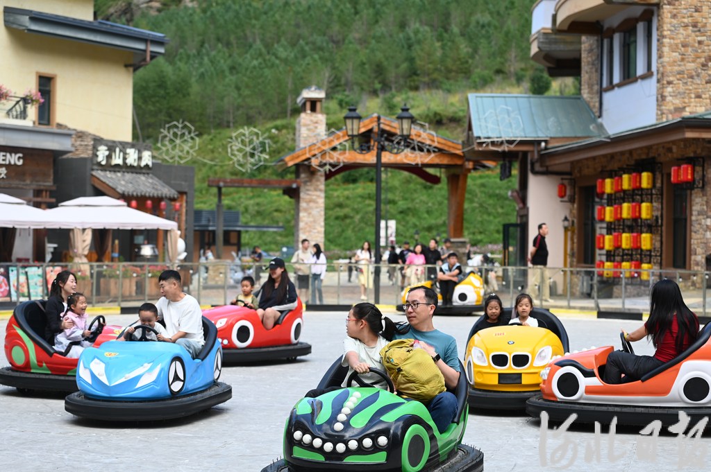 8月24日,游客在太舞滑雪小镇体验碰碰车。 河北日报记者王伟宏摄