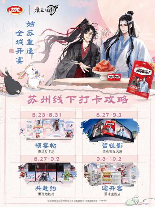 原标题:从观前街到地铁站:卫龙亲嘴烧x魔道祖师打造苏州全城沉浸式打卡地图