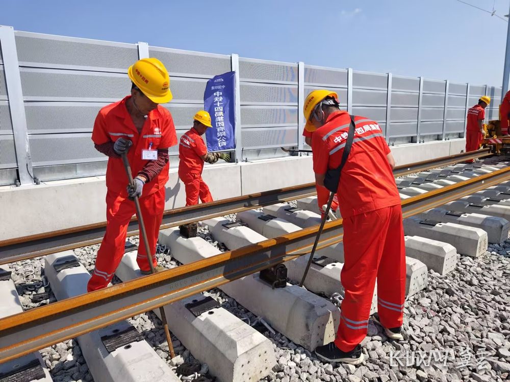 “铺轨的重难点主要是道岔焊接,我们运用闪光焊工艺,采用两套履带式牵引车、长轨推送装置等铺轨设备,实现双线前后同时铺设,单线日铺轨道可达6公里。”中铁十四局石衡沧港城际铁路铺轨项目总工张才刚说,计划2026年2月前,石衡沧港城际铁路衡黄段铺通全线长轨。