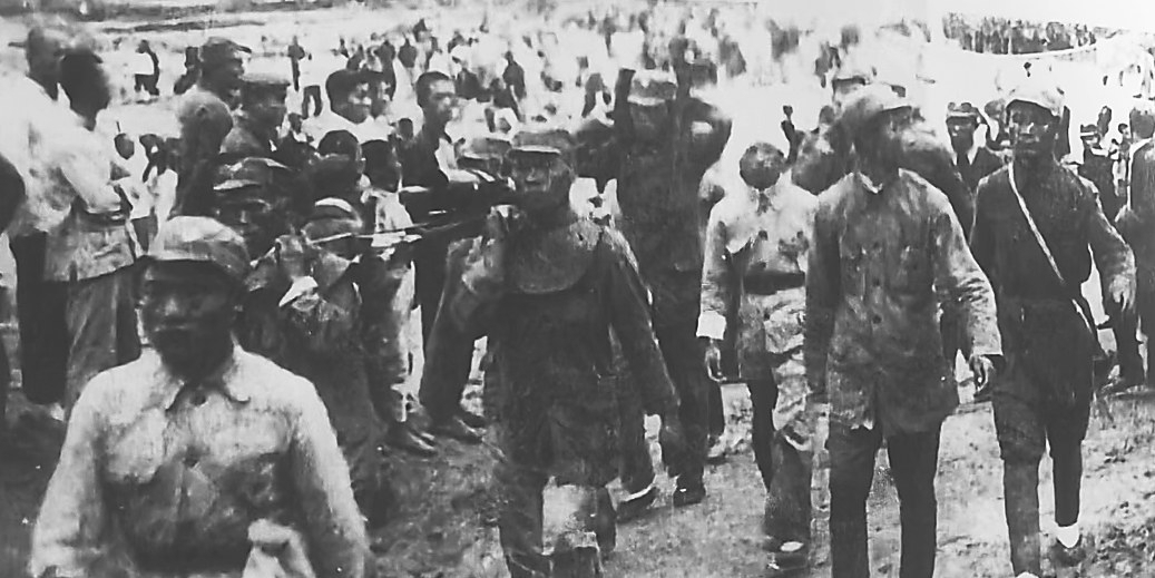 新七旅第十九团在娄子歼敌战斗后胜利归来。