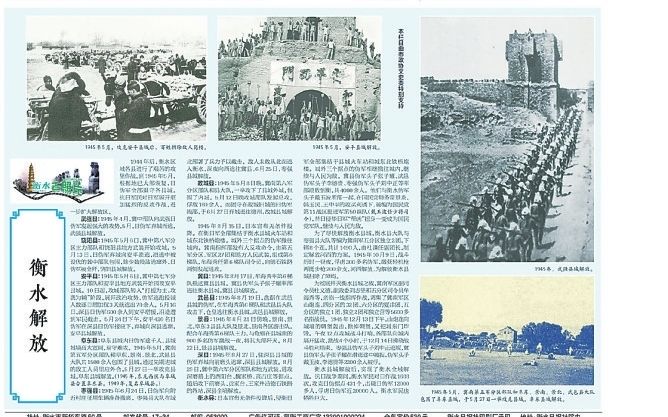 《抗日战争中我区各县城解放日期》刊发在1985年9月8日《衡水日报》3版:武强、饶阳、安平、阜东、枣强、故城、冀县……1945年春到抗战结束,衡水抗日武装全面反攻,各县陆续解放。