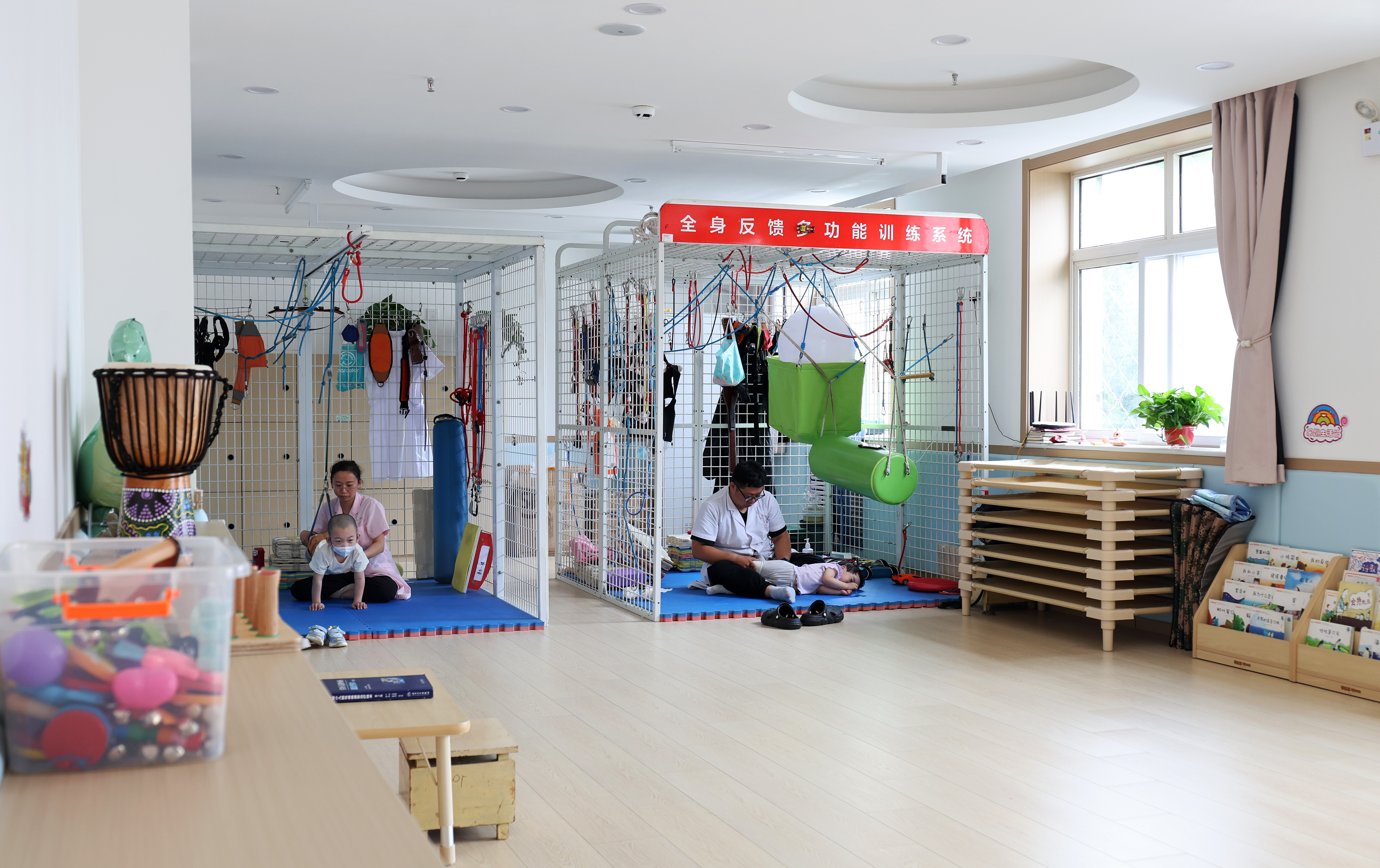 彩虹滑梯下,2岁的自闭症儿童小宇(化名)正跟着康复师钻过彩色隧道,这个曾经抗拒任何肢体接触的孩子,如今会主动牵起老师的手;感统训练室里,脑瘫患儿朵朵(化名)盯着智能OT系统屏幕上跳动的星星,在抓握玩具的游戏中咯咯直笑……走进衡水市康复托育中心,这样温暖的场景每天都在上演。