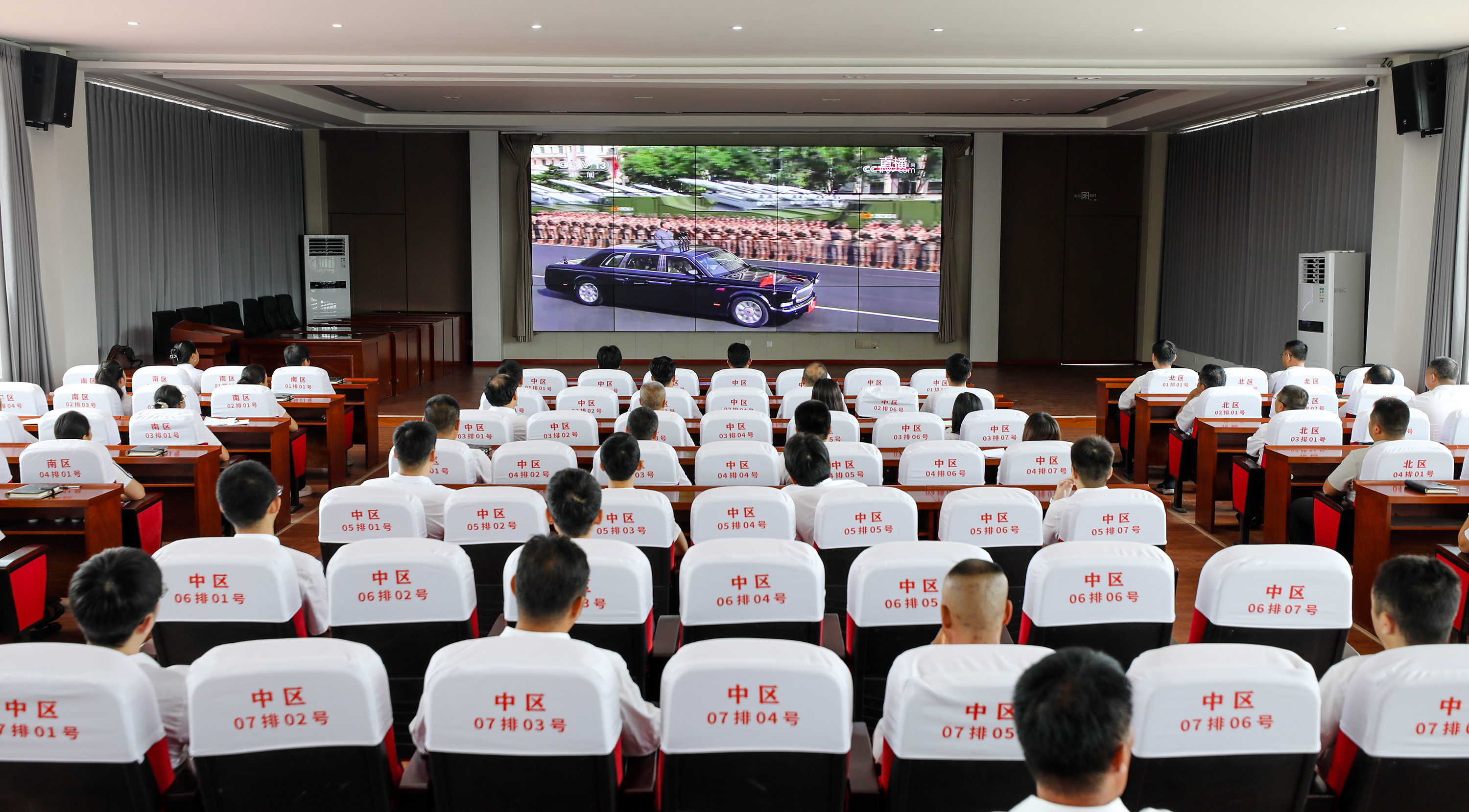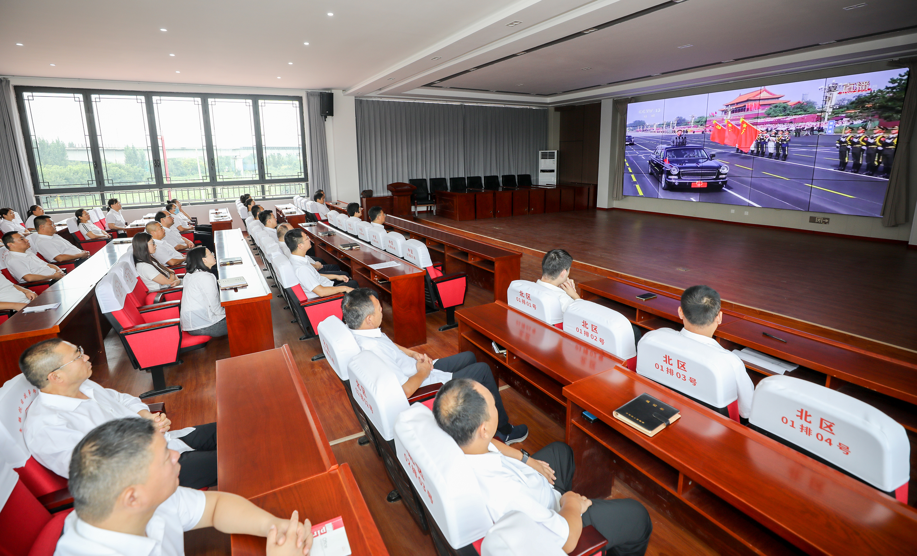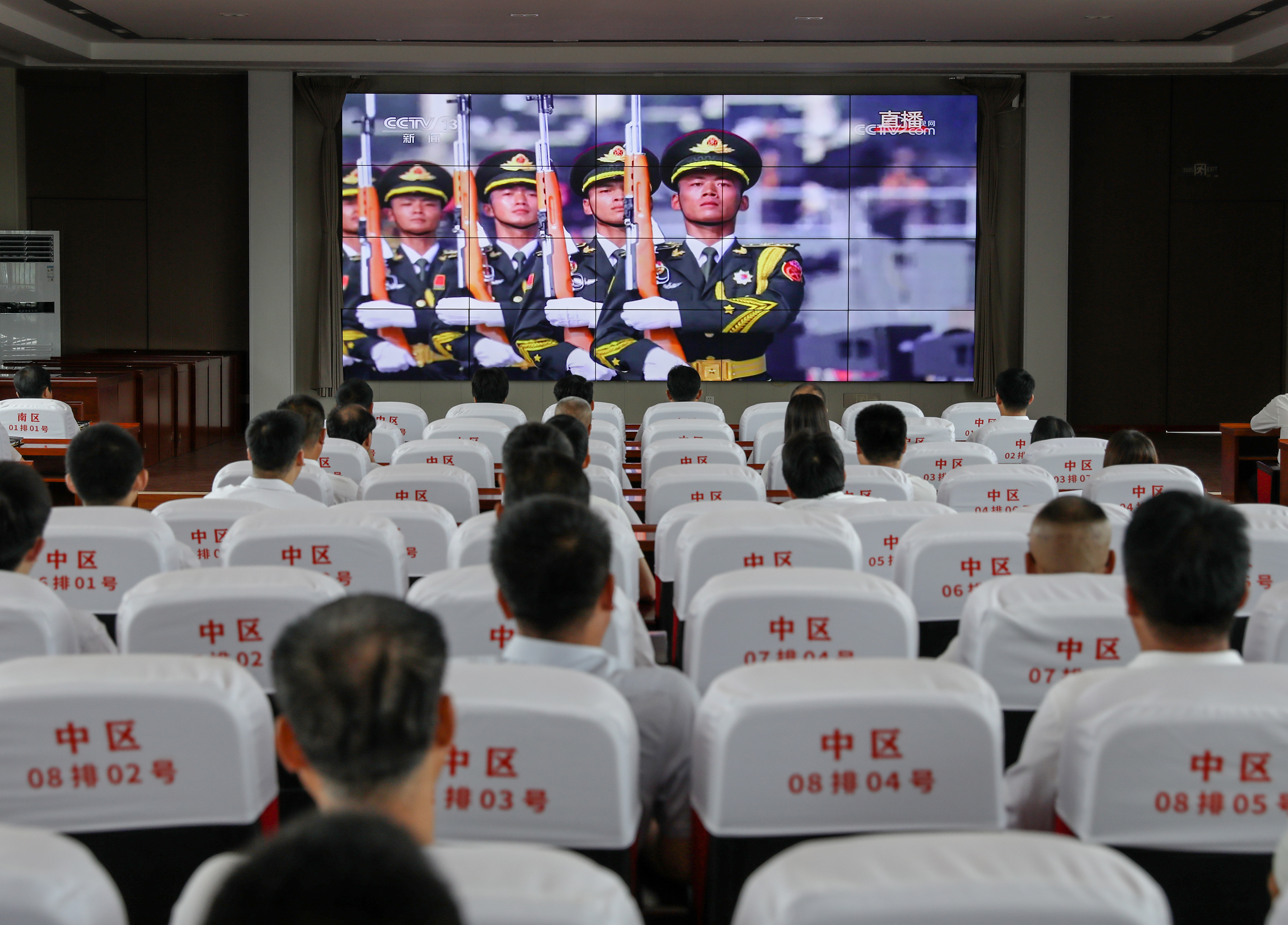 枣强县肖张镇组织镇村干部集中收看纪念中国人民抗日战争暨世界反法西斯战争胜利80周年大会。