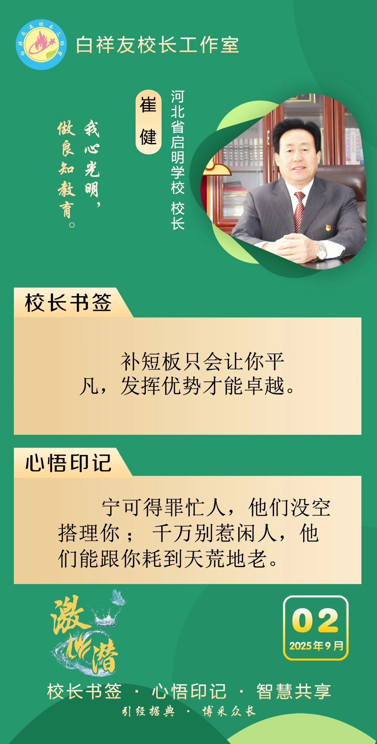 “白祥友校长工作室”成立于2019年4月,是教育部“国培计划”中小学名校长领航工程、河北省首批名校长工作室,目前省内外成员校59所。工作室坚持“资源共享、智慧共融、互助共赢”理念,已成为思想碰撞的交流场,资源共享的品牌站,成果展示的辐射源。 点赞 +1 微博 微信 我要评论 发布 相关推荐 祝贺!衡水十三中学子省赛获奖 教育大观 1天前 白祥友校长工作室成员新疆实验中学冯永庄校长一行来衡水十三中参观交流 教育大观 3天前 春日里,衡水十三中学子“抢”个痛快,“拼”出花样! 教育大观 6天前 衡水市委管理干部学习贯彻党的二十届四中全会精神研讨班开班 政情 03-19 全市一等奖!衡水十三中激潜教育再结硕果 教育大观 03-17 巾帼筑梦绽芳华 向光而行建新功 河北衡水中学举办第十八届“杰出女教师”表彰大会 资讯速递 03-09 衡水十三中学子这样追“锋”! 教育大观 03-06 热门 一天 三天 一周 1 微改革激发新活力 微创新助力大发展——衡水市扎实推进改革创新工作走深走实 2 【新闻发布】 创新招商促落地 深化服务提质效 衡水市持续打造投资兴业热土 3 春菜上新 衡水市区超市“鲜”意十足 4 衡水发布27个重点招商产业 聚焦县域特色精准发力 5 我市全方位营造安心舒心消费环境 全年累计使用补贴资金8.3亿元 带动消费61.3亿元 6 衡水滏阳路:美人梅盛开 繁花似锦 7 衡水市举办主城区网络餐饮食品安全培训会 8 故城:百人太极展风采 全民健身焕新颜 9 阜城码头镇:运河岸边焕新颜 乡村颜值气质双提升 10 全国学雷锋活动示范点衡水公交18路队:服务不是喊口号,是把乘客没想到的提前想到 1 一碗免费热食 暖了衡水的烟火人间 2 衡水桃城区城东社区开展“世界水日”主题宣传活动 3 衡水市各部门各单位有力有序开展树立和践行正确政绩观学习教育 4 “入企探岗”+“直播带岗” 衡水市“春风行动”线上直播招聘活动创新出彩 5 衡水市2026年上半年全国计算机等级考试本周末开考,市教育考试院发布考前温馨提示 6 河北各地各部门各单位扎实开展树立和践行正确政绩观学习教育 7 【乡村行 看振兴】“老咸菜”里的乡愁——走进武邑县冀京农粮食种植专业合作社 8 微改革激发新活力 微创新助力大发展——衡水市扎实推进改革创新工作走深走实 9 让百姓在家门口看好病 ——河北省聚力建设紧密型县域医共体 10 深州市庄火头村:人勤春早管桃树 精耕细作盼丰收 1 “白牌”电动自行车还能骑吗? 衡水晚报“帮办”核实:已全面禁行,违规上路会受罚 2 高职单招考试3月21日开考 衡水9300余名考生将参加考试 3 【新闻发布】聚焦科技赋能 衡水绘就营商环境新图景 4 探秘气象“大本营” 解锁防灾新密码 饶阳县气象局举办世界气象日科普开放活动 5 【新闻发布】锚定便民利企目标 衡水发布2026年自然资源营商环境新蓝图 6 315金融观察|大地财险罚单密集落地,暴露合规短板 7 以鱼养水净河道 2万余尾草鱼苗放流滏阳河衡水市区段 8 枣强县第四届杏花文化宣传推介会邀您共赴春日之约 9 2026年1-2月份主要经济数据公布 全省经济起步有力 10 河北省2026年“世界水日”“中国水周”现场宣传活动在衡水举行 广告 广告 广告 24小时 1 白祥友名校长工作室 | 激潜教育探索随笔(第787期) 2 “创赢未来”2026创业大赛衡水选拔赛开始报名了 3 泰州科举院试文化文物展走进衡博 4 衡水市完成全省首个公共数据产品交易 公共数据收益缴入国库 5 孙敬学堂:深耕礼孝传承 筑强研学高地——我市文化建设走笔之三 6 仅用两分钟 衡水交警紧急开道护送断指伤者就医 7 【乡村行 看振兴】科技种出“新花样”——探访桃城区衡水国际设施园艺产业园 8 河北衡水:全民健身 燃动湖城 系列④ —— 乒动湖城 国球飞扬 9 再攀高峰!中国人寿2025年总保费首破7000亿,同比增长8.7% 10 【凝心聚力 真抓实干 奋力实现“十五五”良好开局】锚定建设农业强国目标 提升农业综合生产能力