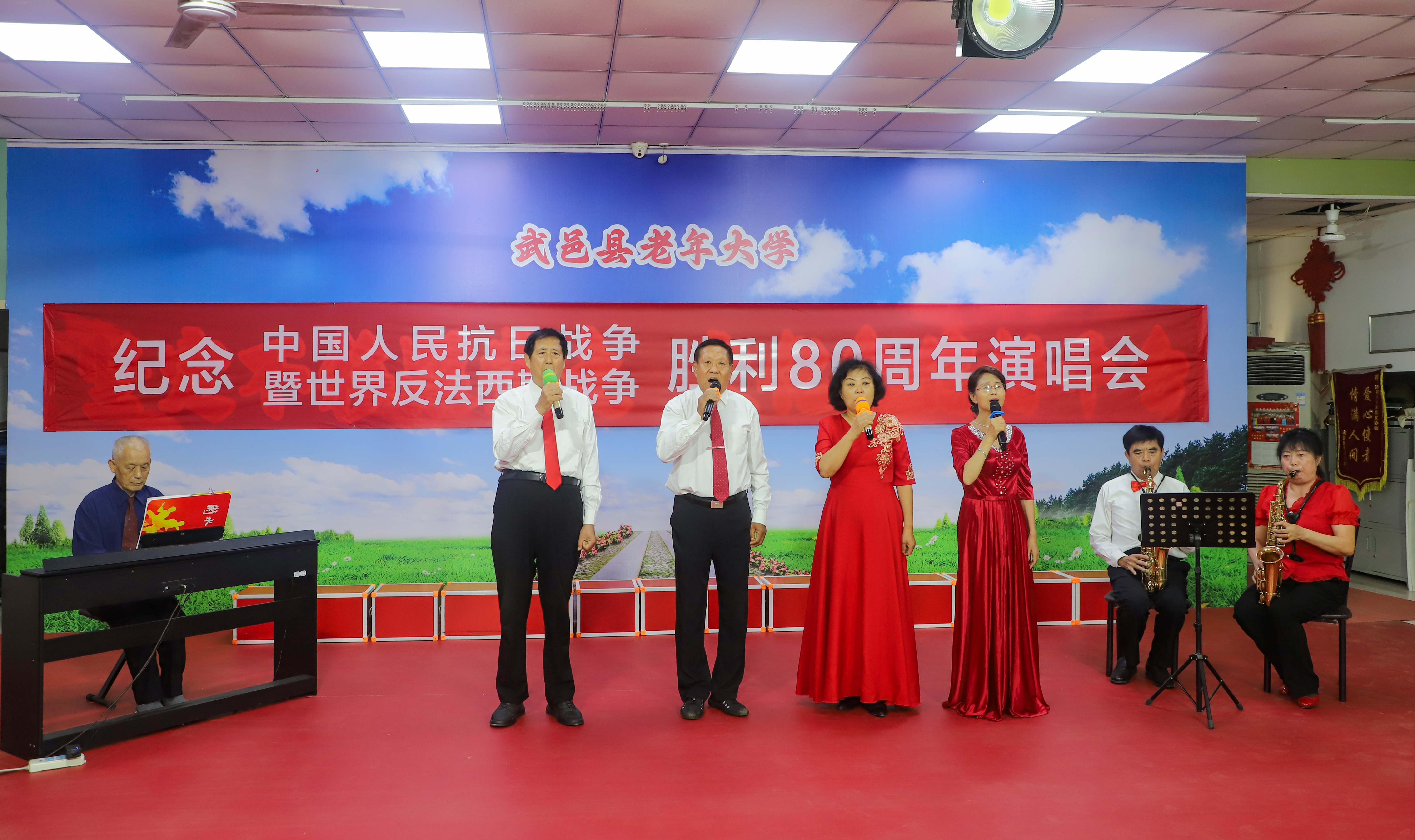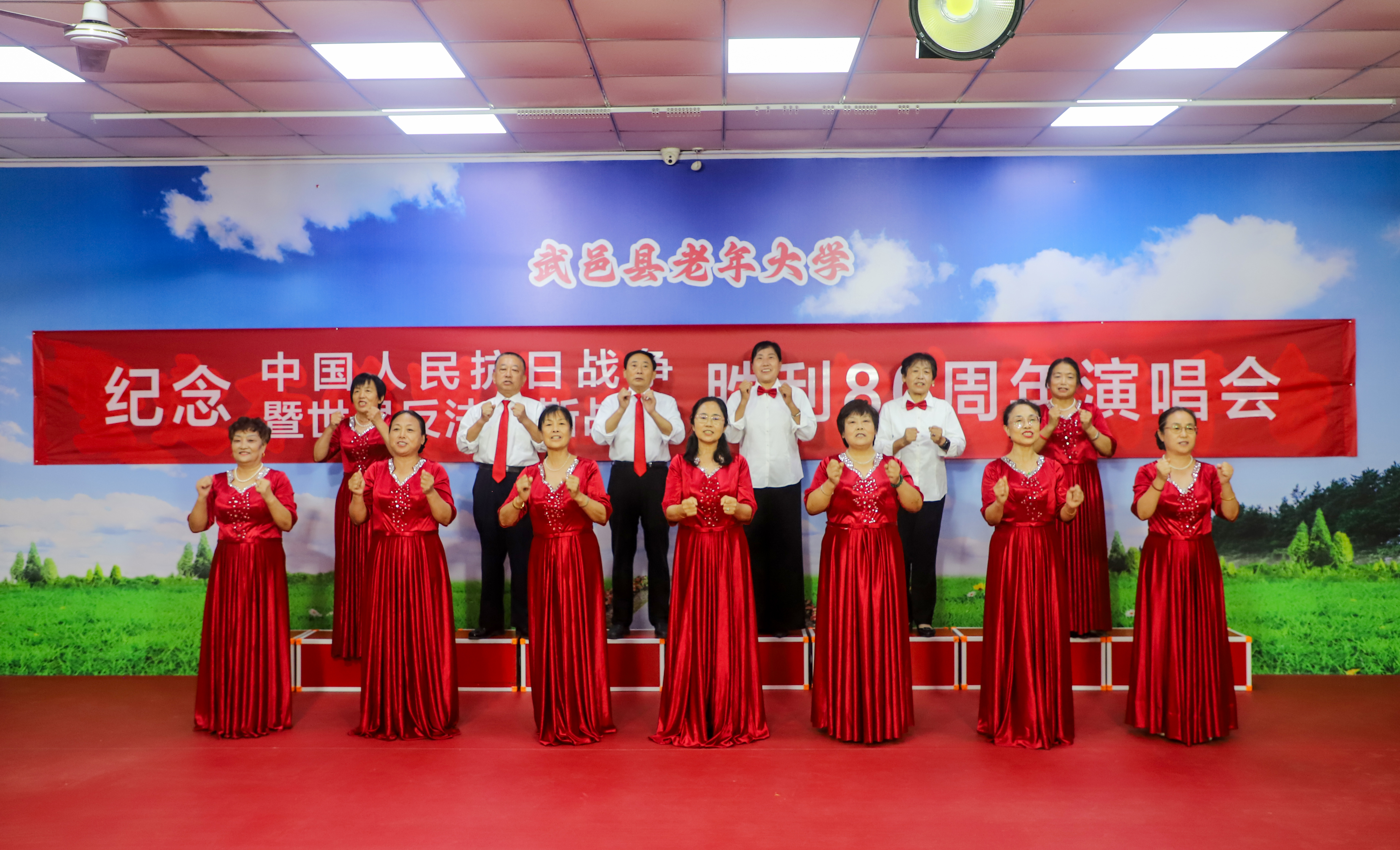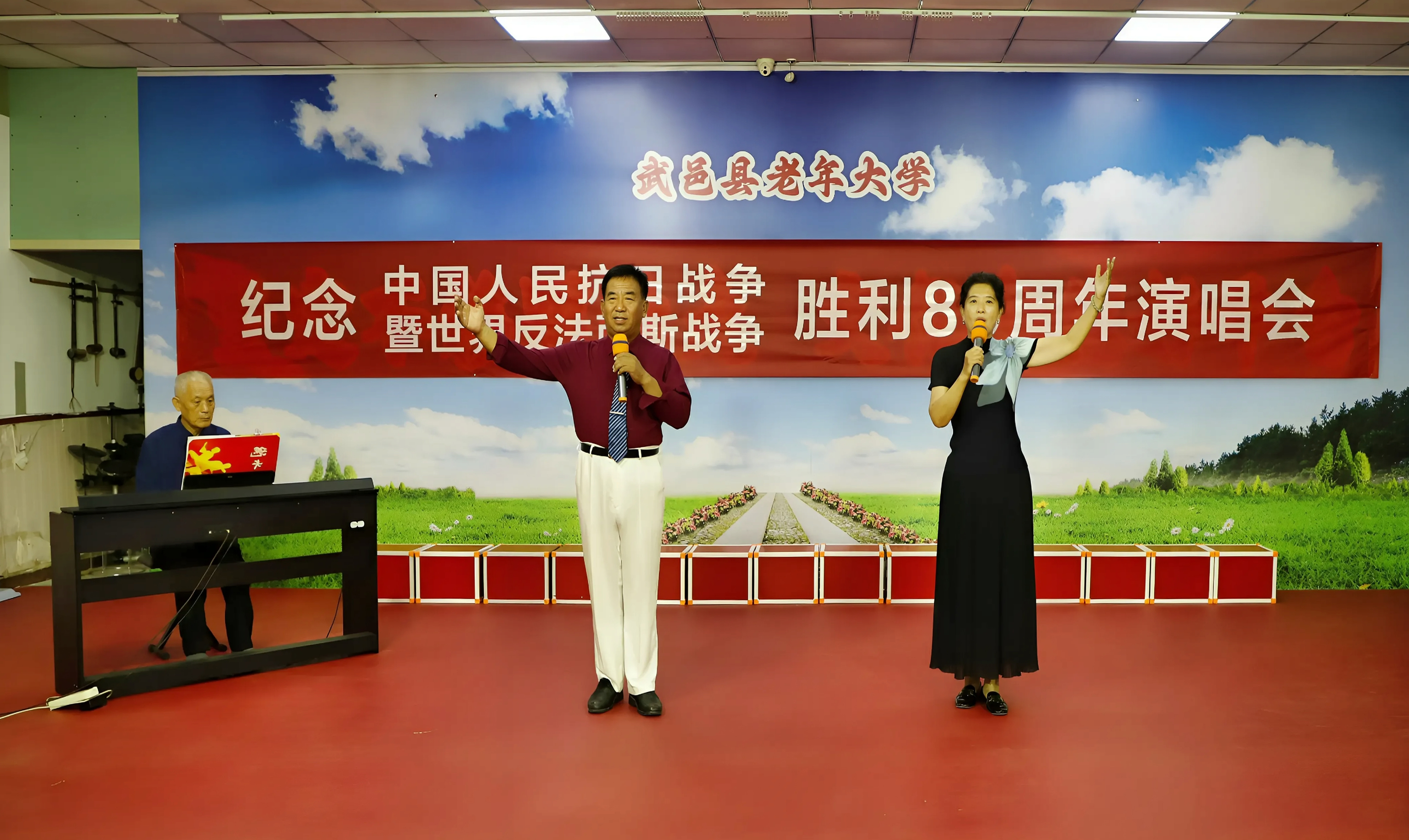 9月2日,由中共武邑县委组织部、武邑县老区建设促进会主办,武邑县老年大学承办的纪念中国人民抗日战争暨世界反法西斯战争胜利80周年歌曲演唱会,在武邑县老年大学排练大厅举行,以激昂的歌声表达铭记历史,缅怀先烈,珍爱和平,开创未来之情。