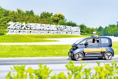 9月2日,智能巡逻车在临空经济区(廊坊)街头巡逻。 本组图片由本报记者王伟摄