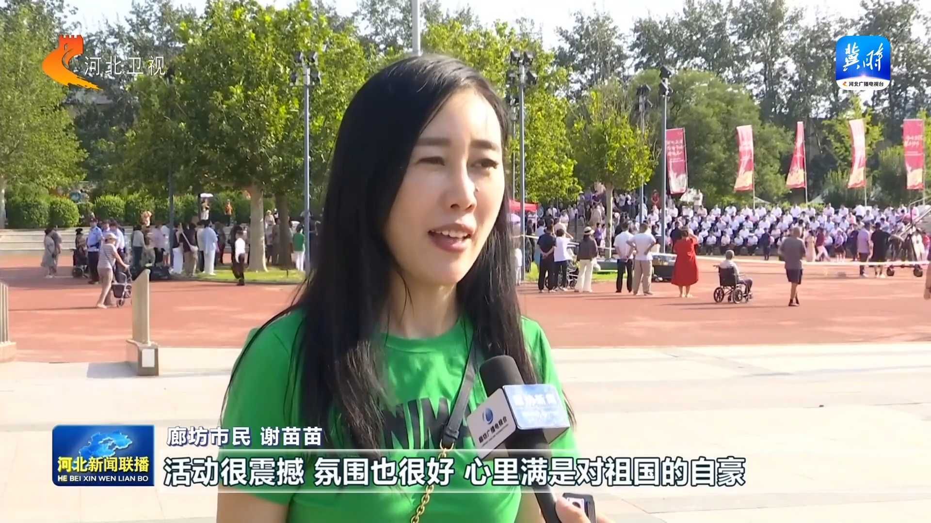 廊坊市广阳区组织开展"山河见证 星火永续"纪念中国人民抗日战争暨世界反法西斯战争胜利80周年主题活动,共有5000多名群众参与,大合唱《在太行山上》、诗朗诵《回家》、舞蹈《红色记忆》等节目诠释了"不忘战争创伤,守护和平未来"的主题。在石家庄、张家口、唐山等地,多场群众文化活动也在持续开展,展现人们团结一心、奋勇拼搏、共创美好生活的昂扬姿态。