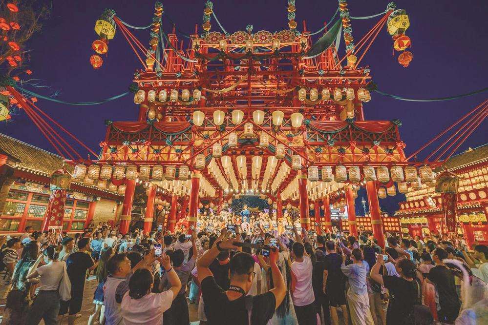 河头老街大唐百戏节打造全天候、全覆盖的演艺矩阵。每天上千场精彩演绎,引来众多游客的阵阵喝彩。 魏永 提供