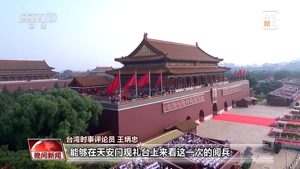 台湾时事评论员 王炳忠:这次非常有幸能够在天安门观礼台上看阅兵。和平必须靠实力才能够确保,在过去,曾经看到那么多先辈牺牲所换得的对日抗战的胜利以及台湾光复,作为每一个中华儿女都不能够遗忘。