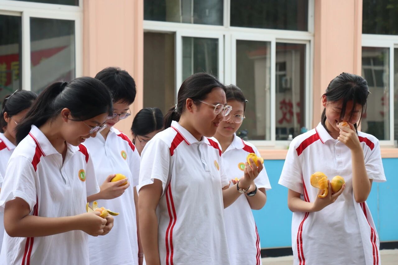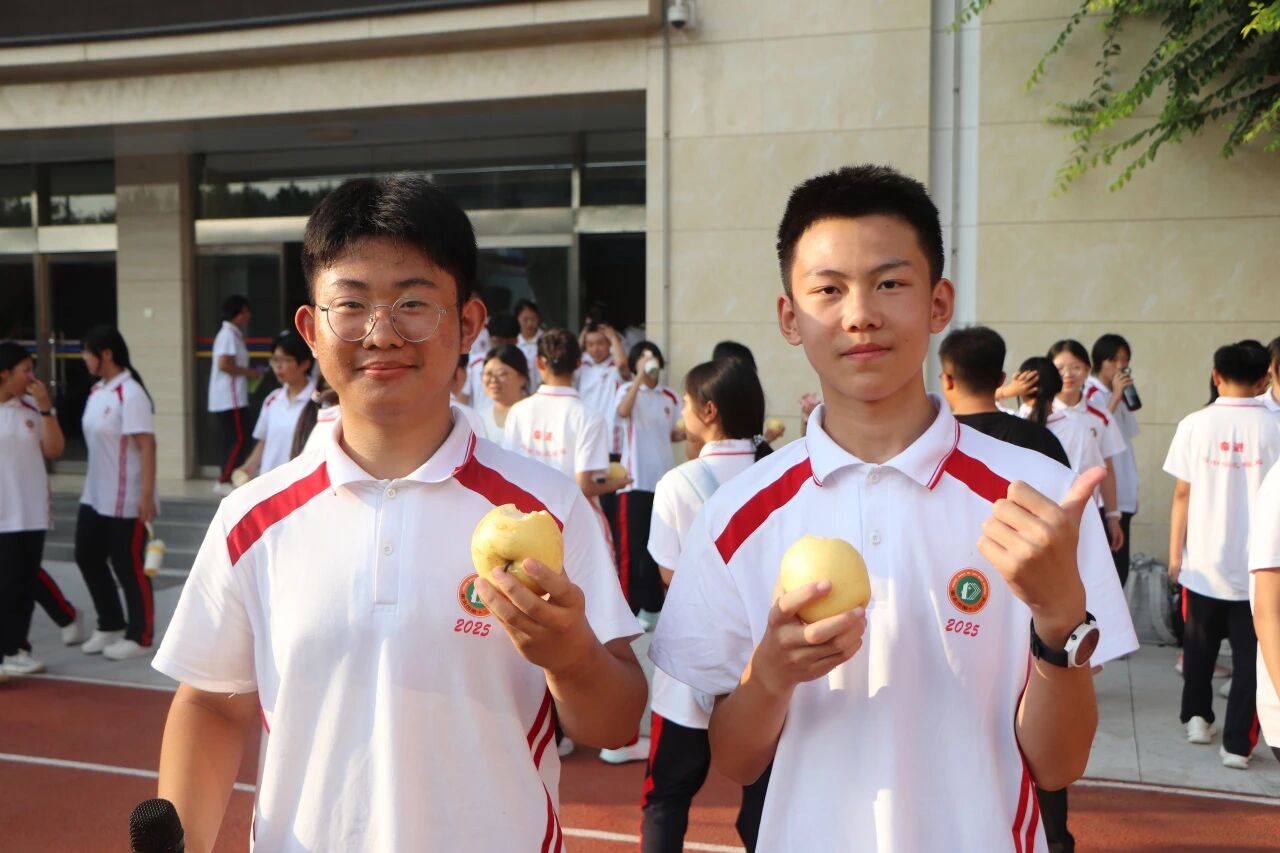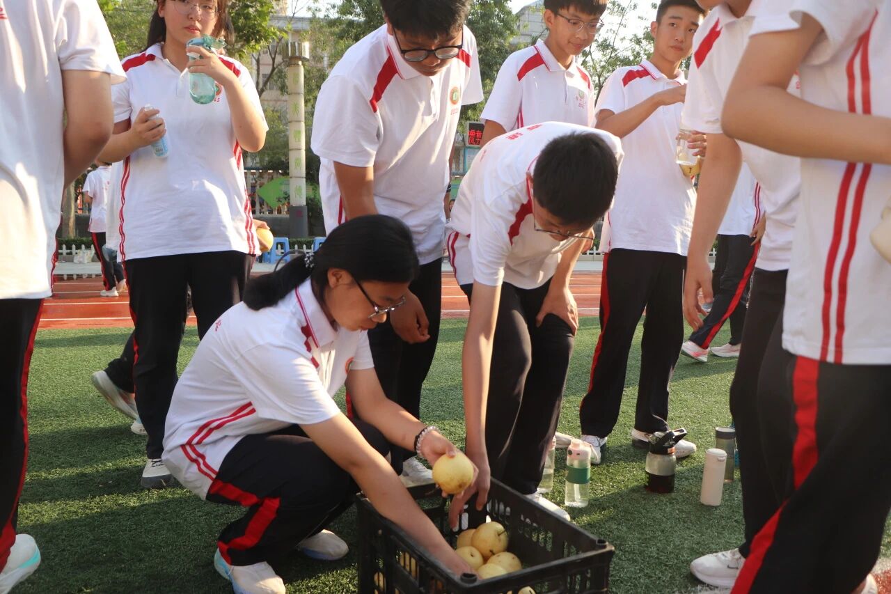 训练结束,新鲜的水果送到同学们手中。火龙果清香酥糯,橘子饱满多汁。拨开橙黄的果皮,酸甜的果肉瞬间驱散疲惫。一阵阵梨香扑鼻而来,仿佛把燥热都揉进了果香里。这些水果不仅是味蕾的享受,更是学校对学子们的贴心牵挂,承载着 “愿同学们健康训练、快乐成长” 的美好期许。
