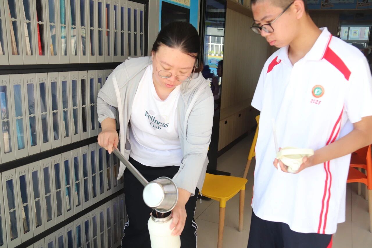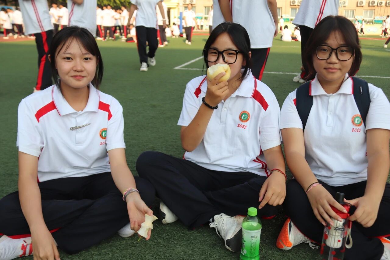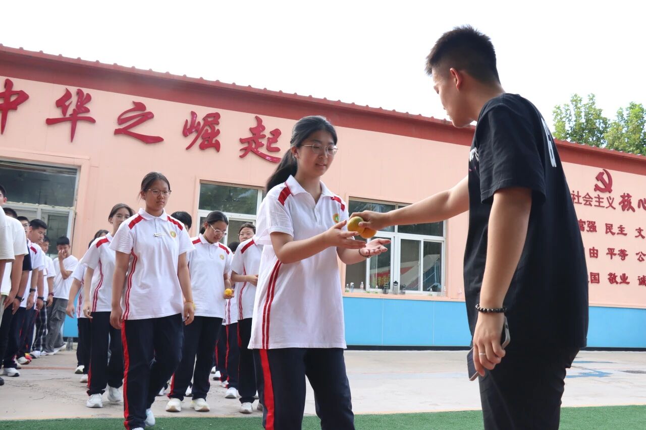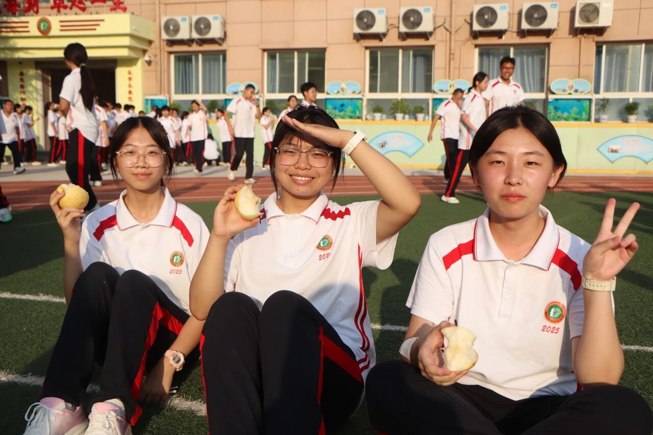训练结束,新鲜的水果送到同学们手中。火龙果清香酥糯,橘子饱满多汁。拨开橙黄的果皮,酸甜的果肉瞬间驱散疲惫。一阵阵梨香扑鼻而来,仿佛把燥热都揉进了果香里。这些水果不仅是味蕾的享受,更是学校对学子们的贴心牵挂,承载着 “愿同学们健康训练、快乐成长” 的美好期许。