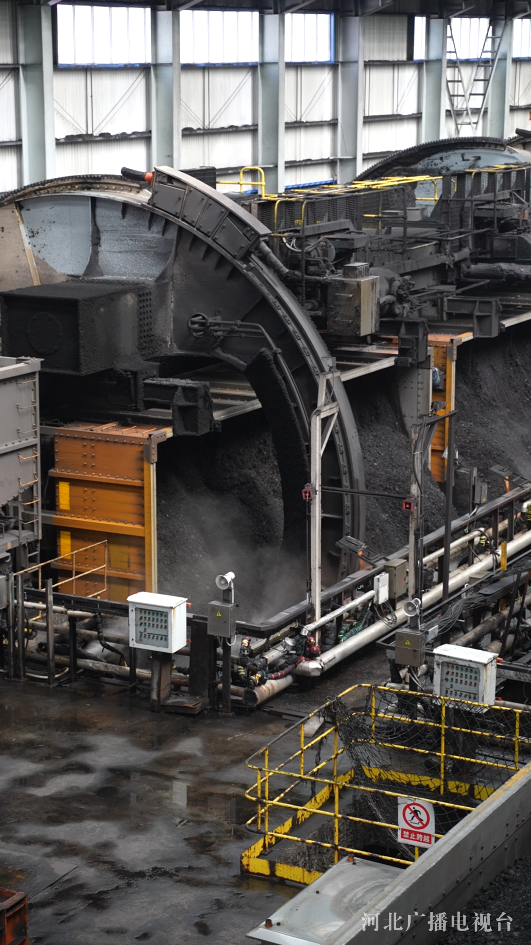 “你看地面那么干净,这观光平台也很干净。”赵永辉介绍,在翻车机底部与振动给料机结合处安装的自动洒水装置,喷洒出来的水雾与煤炭均匀混合,达到合适的含水量,从转运全程的源头实现有效抑尘。