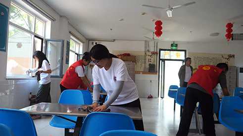 实践团成员在敬老院打扫卫生。阜城县融媒体中心供图