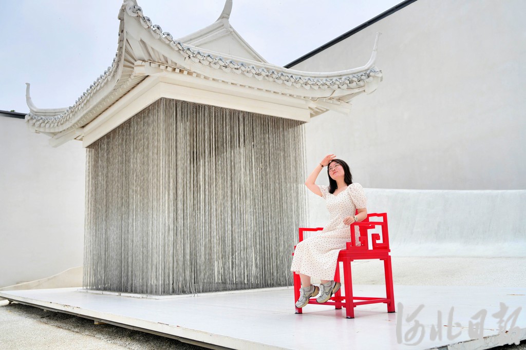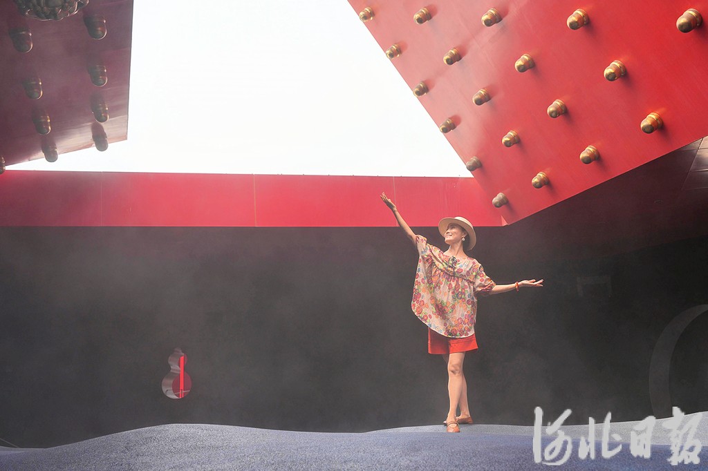 7月8日,游客在廊坊“只有红楼梦·戏剧幻城”打卡拍照。