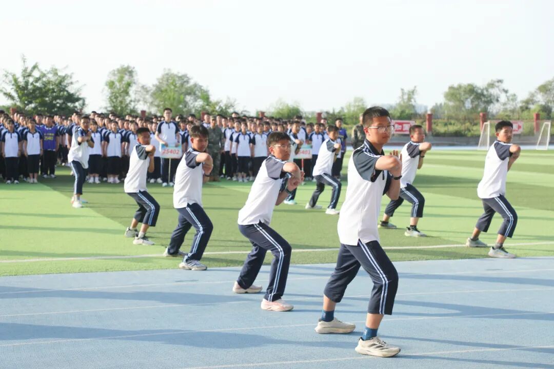 第三篇章将目光投向未来,以精神传承为核心,书写成长新篇。会操表演作为压轴环节,成为全场焦点:22 个新生连队依次迈着整齐的步伐走过主席台,军容严整、口号洪亮,每一个挺拔的身姿、每一次精准的转体,都是汗水浇灌的成果。之后,“学校精神内涵”集体问答环节如期而至,“追求卓越!”的呐喊声冲破天际,这是新生们对学校文化的深度认同,更是他们面向高中生涯、面向未来发出的青春誓言。