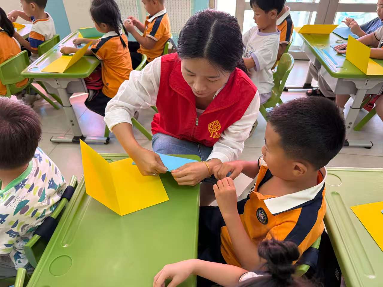 在社区工作人员的指导下,有的孩子为贺卡画上了五颜六色的太阳,希望老师每天都像太阳一样开心;有的孩子在彩纸上写下歪歪扭扭的 “老师辛苦了”,用最朴素的文字表达着感恩。这些作品虽然简单,却饱含着孩子们的真挚情感,每一笔、每一划都凝聚着孩子们对老师深深的敬意。当老师们接过这些孩子亲手制作的礼物时,看到孩子们真诚的笑容,眼中满是感动,纷纷表示这是自己收到过最珍贵的教师节礼物。
