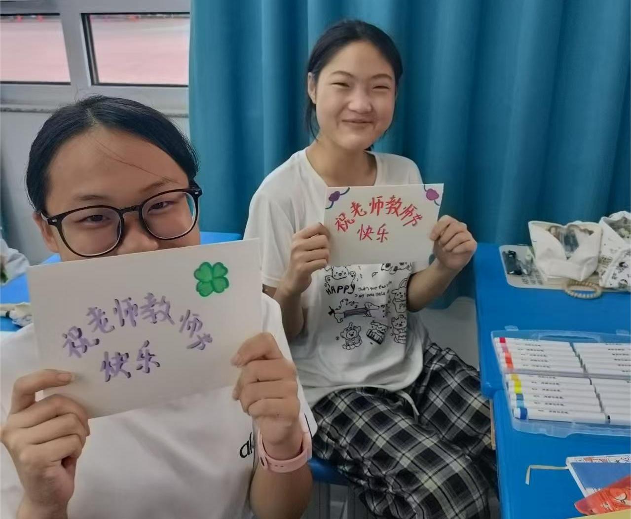 活动中,学生们用最质朴的方式传递温情。走廊里,“老师,您辛苦了,祝您节日快乐!”的问候声此起彼伏;课堂上,齐刷刷的敬礼动作格外庄重;校园中,学生们主动拾起纸屑、轻声慢行……“孩子们的心意很让人感动。”七年级班主任李芳翻看着书写工整的作业本说:“最珍贵的礼物藏在作业本里,往常总有几个孩子漏写标点,今天全班的作业都是‘优’等。”从一句最真的祝福到一份守纪行为,五个看似简单的“一”,串联起学生对老师的感恩之情,也搭建起学生成长的阶梯。