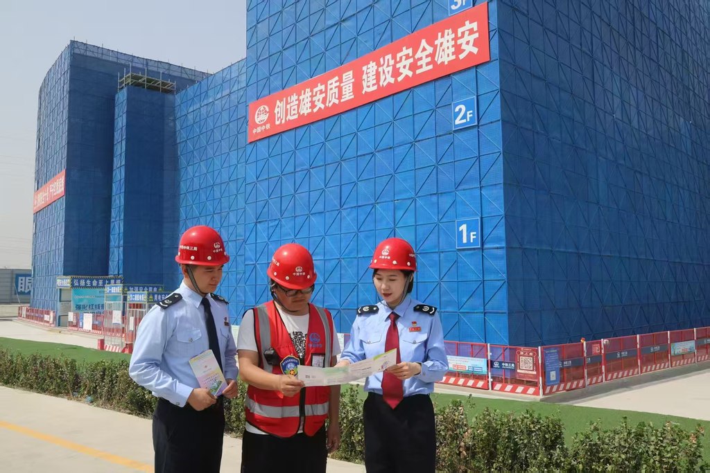 近日,雄县税务局工作人员走访疏解项目,讲解最新税费优惠政策。雄安新区税务局供图