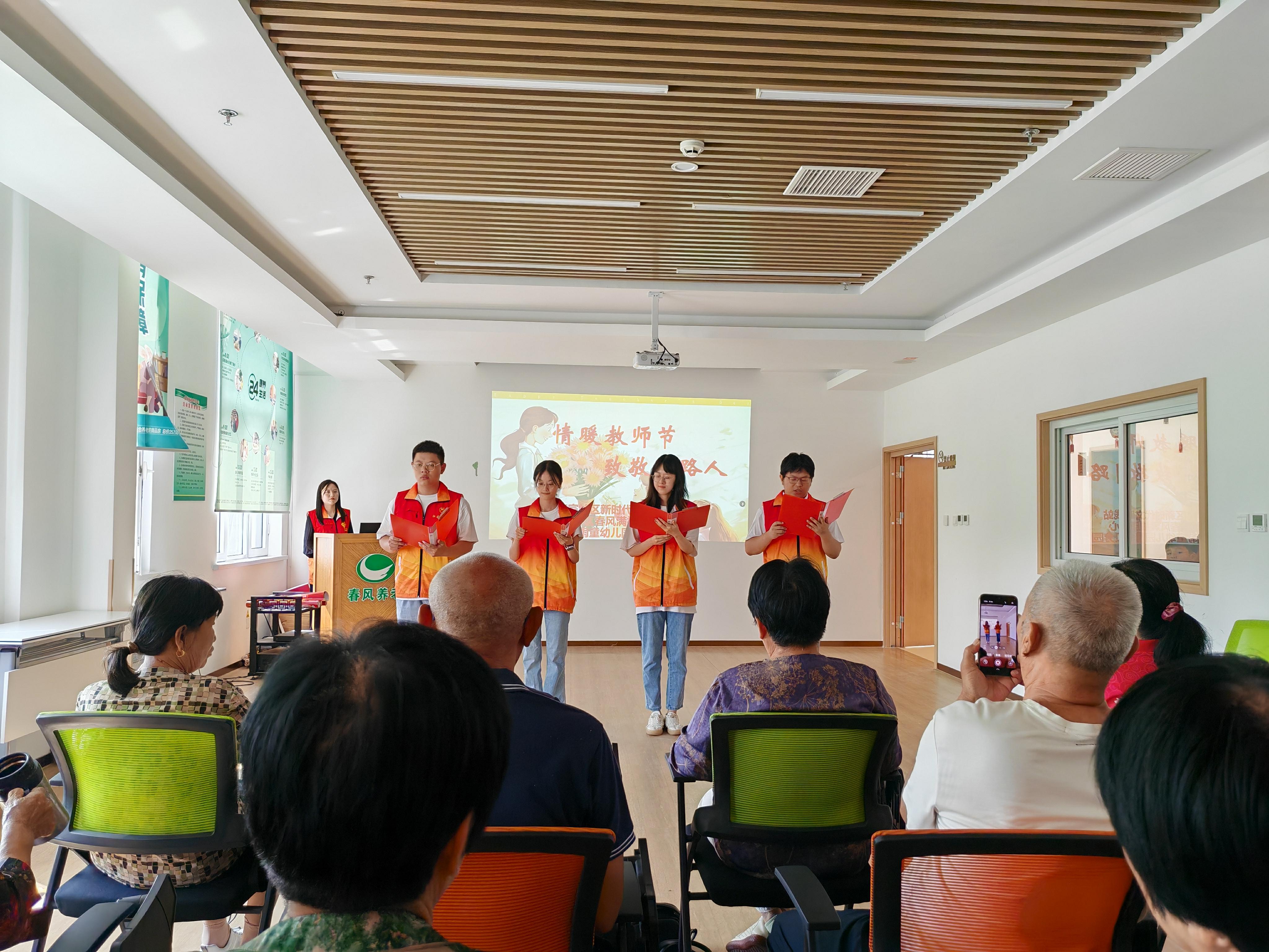金秋九月,丹桂飘香。9月10日,冀州区迎宾社区在春风满袖康养中心举办“情暖教师节 致敬引路人”主题活动,22名退休教师与雨童幼儿园师生欢聚一堂,共庆教师节。