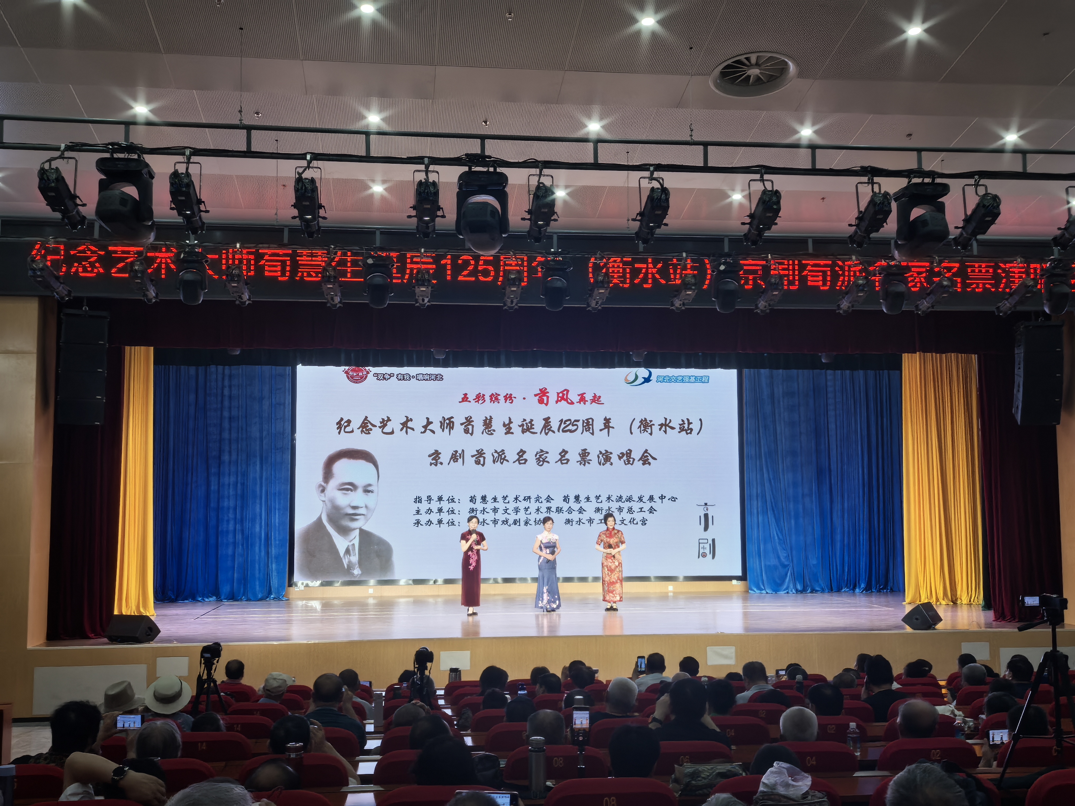 9月9日,“五彩缤纷 荀风再起”纪念艺术大师荀慧生先生诞辰125周年京剧荀派名家名票演唱会在衡水市工人文化宫举行,来自全国各地的京剧荀派名家名票及戏迷观众齐聚一堂,共同探讨荀派艺术的传承与发展。