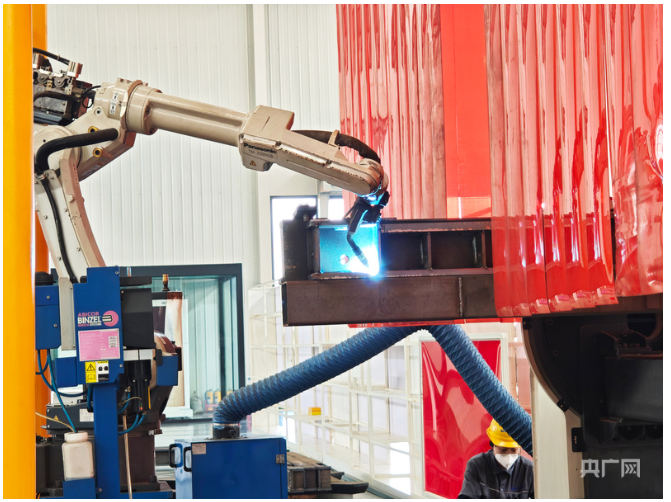焊接机器人精准焊接(央广网见习记者 禹云飞 摄)