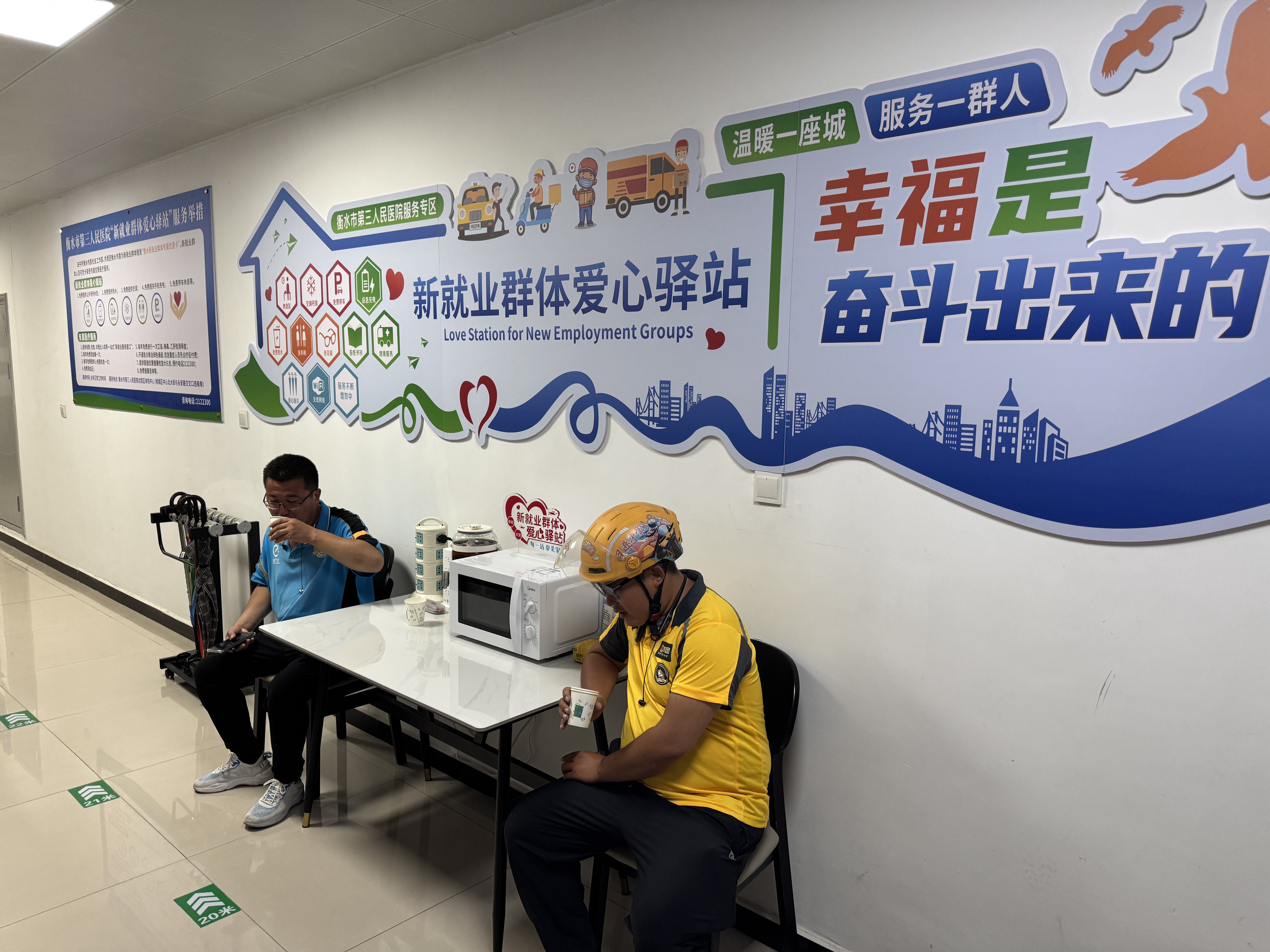 今年以来,衡水市委社会工作部、团市委以新就业群体党建与服务管理为抓手,持续完善服务体系,精准破解外卖员、快递员、网约车司机等群体“急难愁盼”。积极联动衡水市第三人民医院,医院主动响应号召,依托医疗资源优势精心筹备爱心驿站,多方协同将关怀转化为“看得见、摸得着”的便民服务,成为全市关爱新就业群体工作的生动实践。