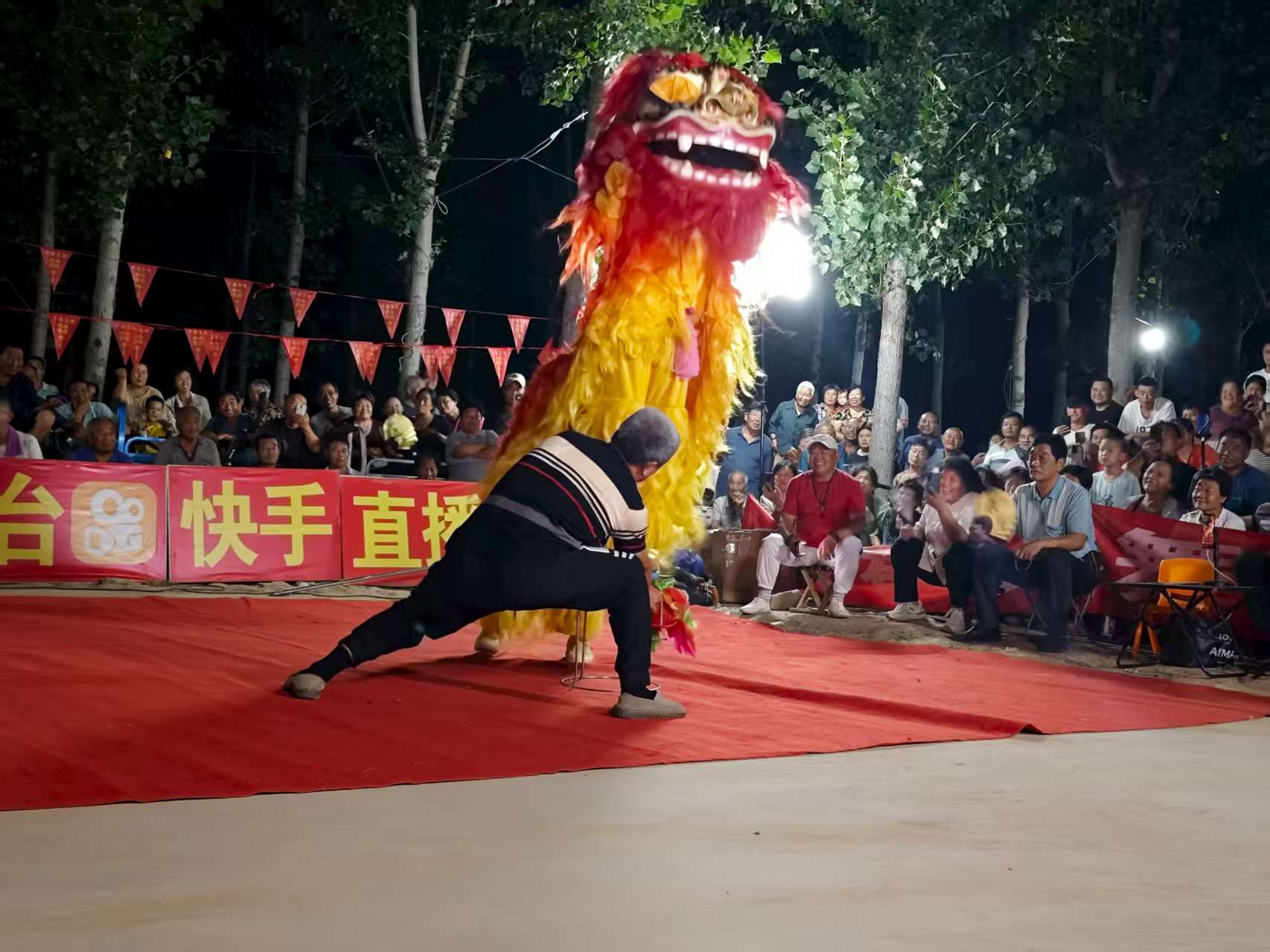 锣鼓声骤然响起,西崔村62岁村民刘豹操控“金狮”跃上台。作为领狮人,他伴着锣鼓声引领狮子翻转腾跃、甩头摆尾,引得台下观众欢呼不停,孩子们踮脚拍手,手机快门声不断。“咱农村人也能有自己的文化乐子,不比城里差!”刘豹探身互动时,脸上满是自豪,这份对传统文化的热爱,让台下观众跟着鼓掌叫好。