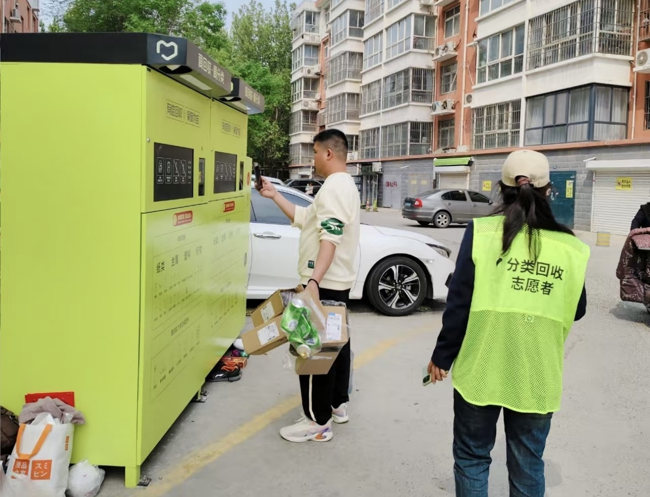 “我们日常都会把班级的废纸、易拉罐等回收起来卖废品做班费,碰到电池这种有害垃圾和其他垃圾会有意识地分类放置。”学生靳伊晨说。
