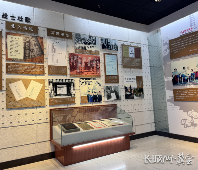 沿着展墙,“诗界旗帜,战士壮歌”的板块瞬间将我们带回那段烽火岁月。1939年,公木在延安的山洞里,与郑律成共同创作《八路军大合唱》。没有风琴,郑律成便哼着曲调,公木侧耳倾听、反复修改,最终诞生了《八路军军歌》《八路军进行曲》《骑兵歌》《炮兵歌》等经典歌曲。展柜里,还陈列着1988年中央军委的命令复印件,由邓小平同志亲笔签署,将《八路军进行曲》正式确定为《中国人民解放军军歌》。