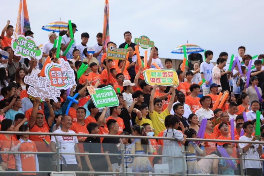 近期,邯郸市18岁以下青少年体育足球赛事武安赛区比赛正火热进行。武安巧妙将历史文化元素融入赛事——比赛服装印着武安古迹图案,队名取自当地支柱产业,徽章设计融入太行山水元素;赛前赛后还推出旅游文化展览、文创展销、美食体验等活动,让赛事变成一场沉浸式文旅盛宴。