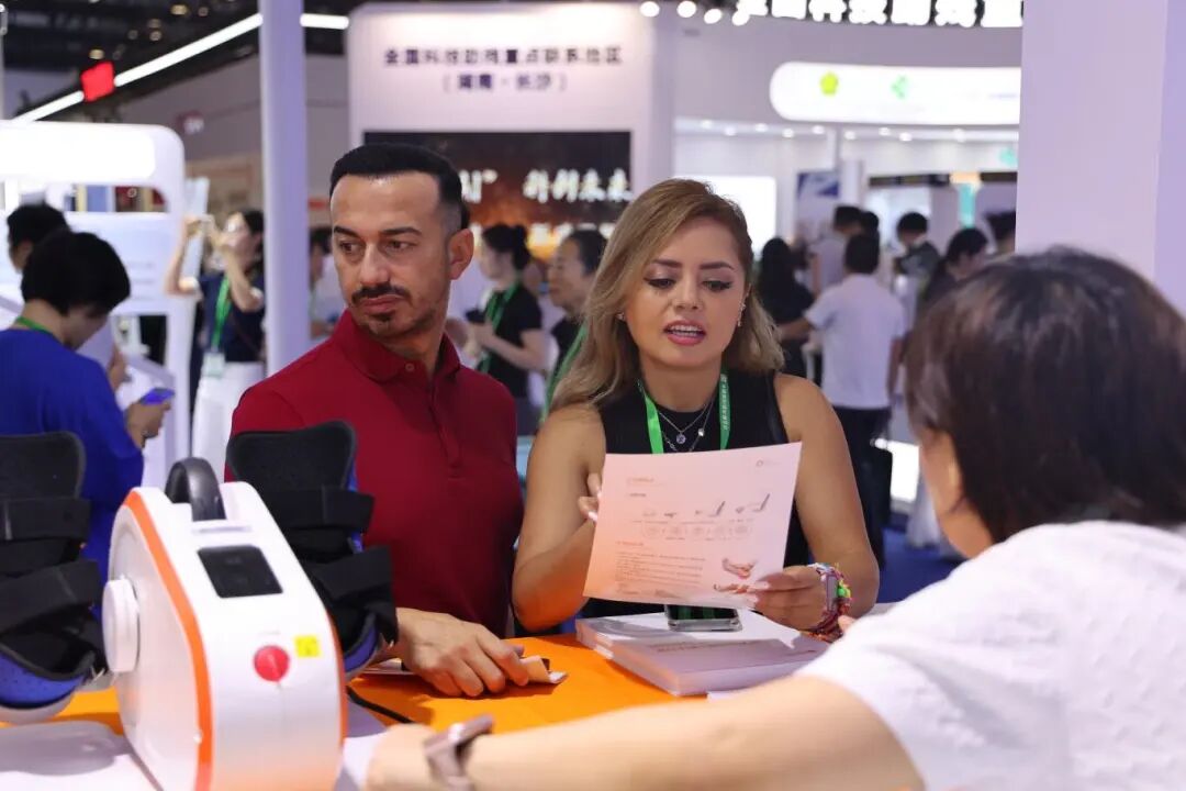 冀州区此次参展展品涉及助行移动辅具、康复设备及治疗、护理辅具、医疗辅具、养老用品等5大类70余种产品,吸引中残联、中国残疾人辅具器具中心、中国残疾人体育运动管理中心、部分省市残联、体管中心及俄罗斯、迪拜、印尼、埃塞俄比亚等国家和地区的参会人员、采购商参观洽谈。极智医疗(冀州)产品总监、康复治疗师、中国残疾人康复协会委员张磊介绍,极智医疗基于AI大数据和智能物联网,研发了全身等速测评训练系统,它可以对人体的肩肘腕髋膝踝进行全面的测评和训练,可覆盖整个康复周期,在此次展会获得了国内外专家的广泛认可。