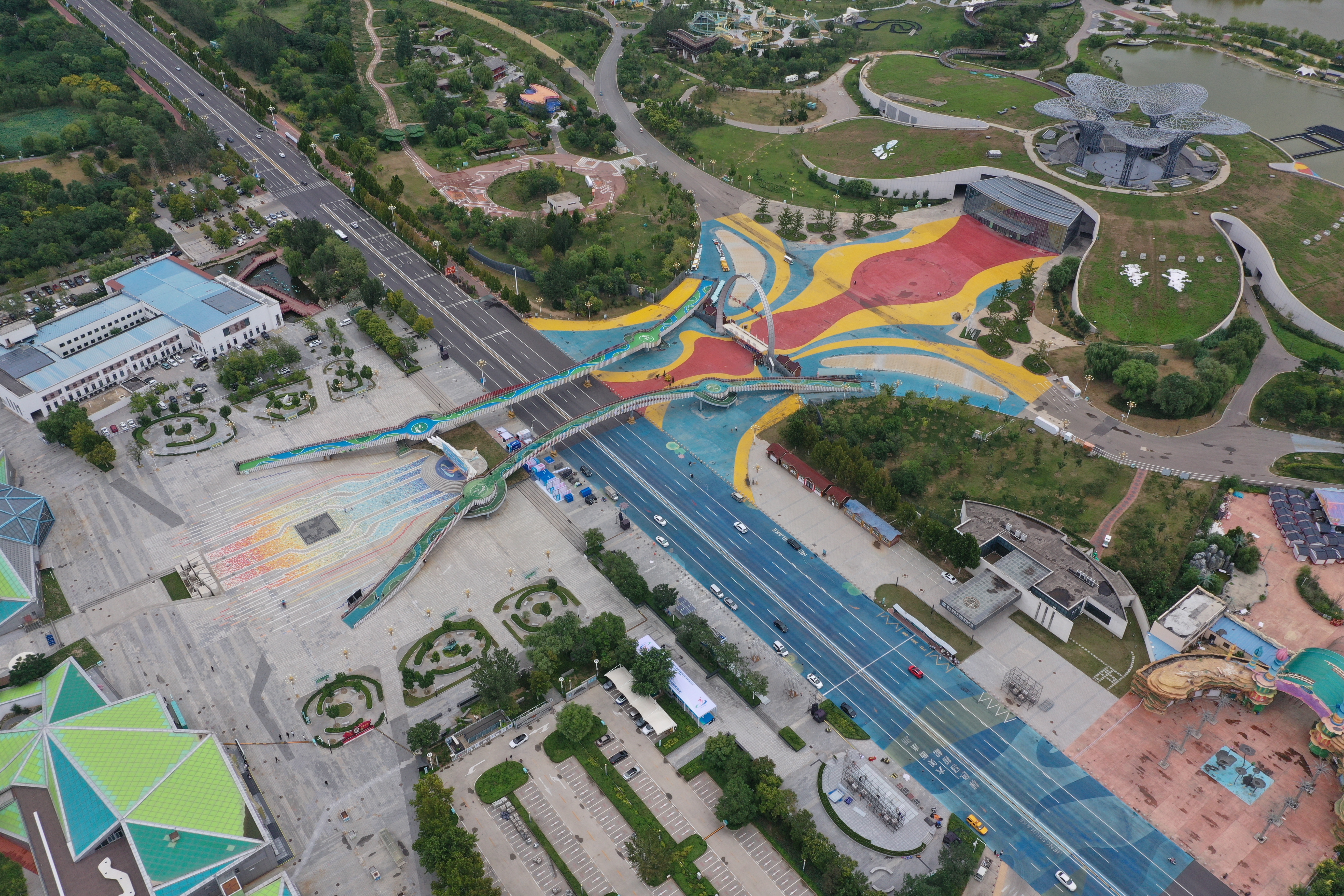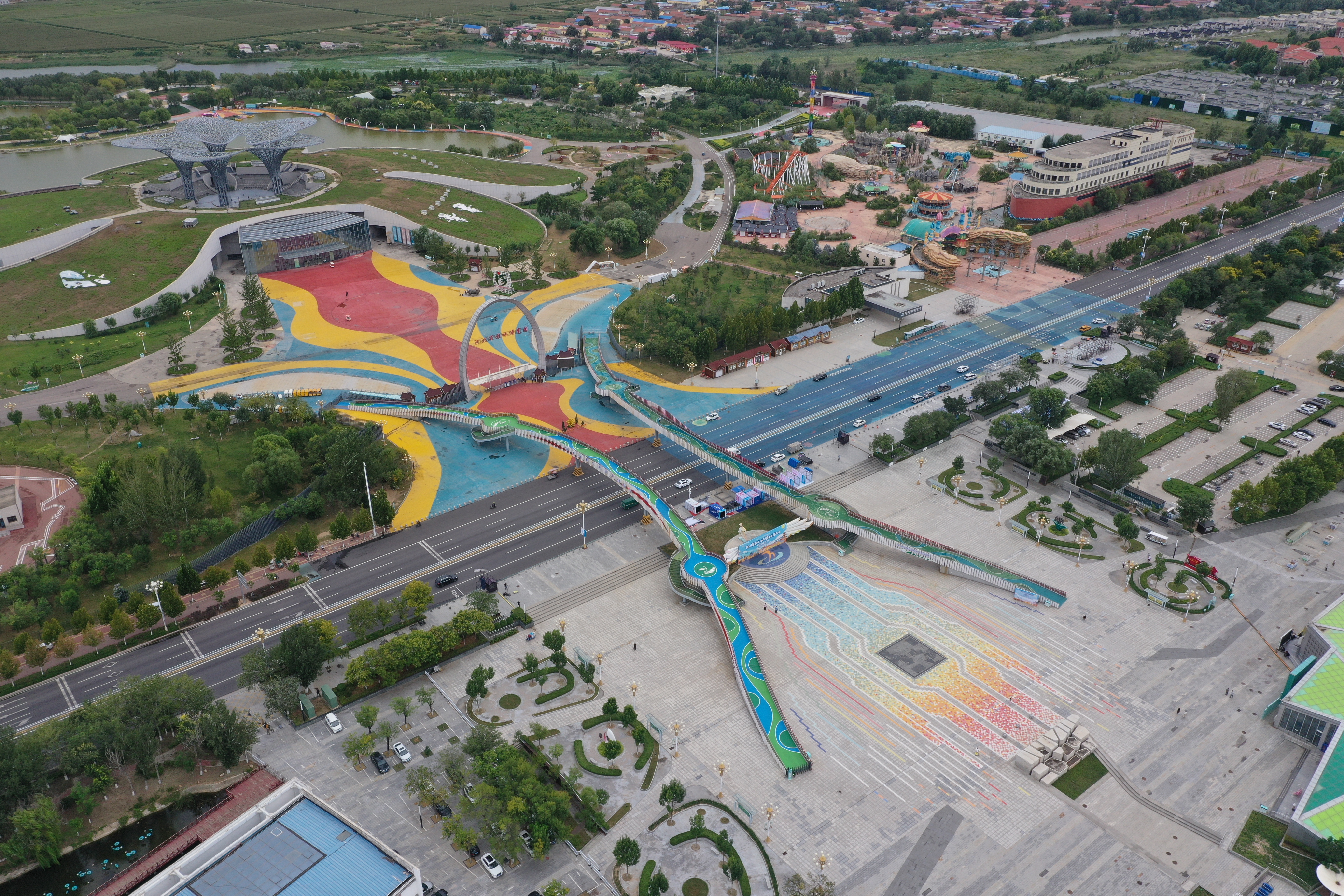 衡水湖马拉松广场总占地 9.6万平方米,是专为衡马赛事打造的综合性户外场地,同时也是市民日常休闲、健身的重要场所。广场设计深度融合衡水地域特色与马拉松运动精神:主体建筑以衡水湖标志性植物“荷”为原型,白色穹顶搭配流线型线条,既像绽放的荷花,又似奔跑者舒展的身姿;建筑立面嵌入剪纸、内画等非遗元素浮雕,展现当地文化底蕴。广场核心区域设有衡水湖景区全景浮雕地图,方便跑者与游客了解生态景观分布,此外,广场东侧的双虹桥以马拉松终点冲刺红飘带为设计灵感,桥面铺设防滑耐磨材料,既保障赛事通行安全,又成为广场标志性打卡点。