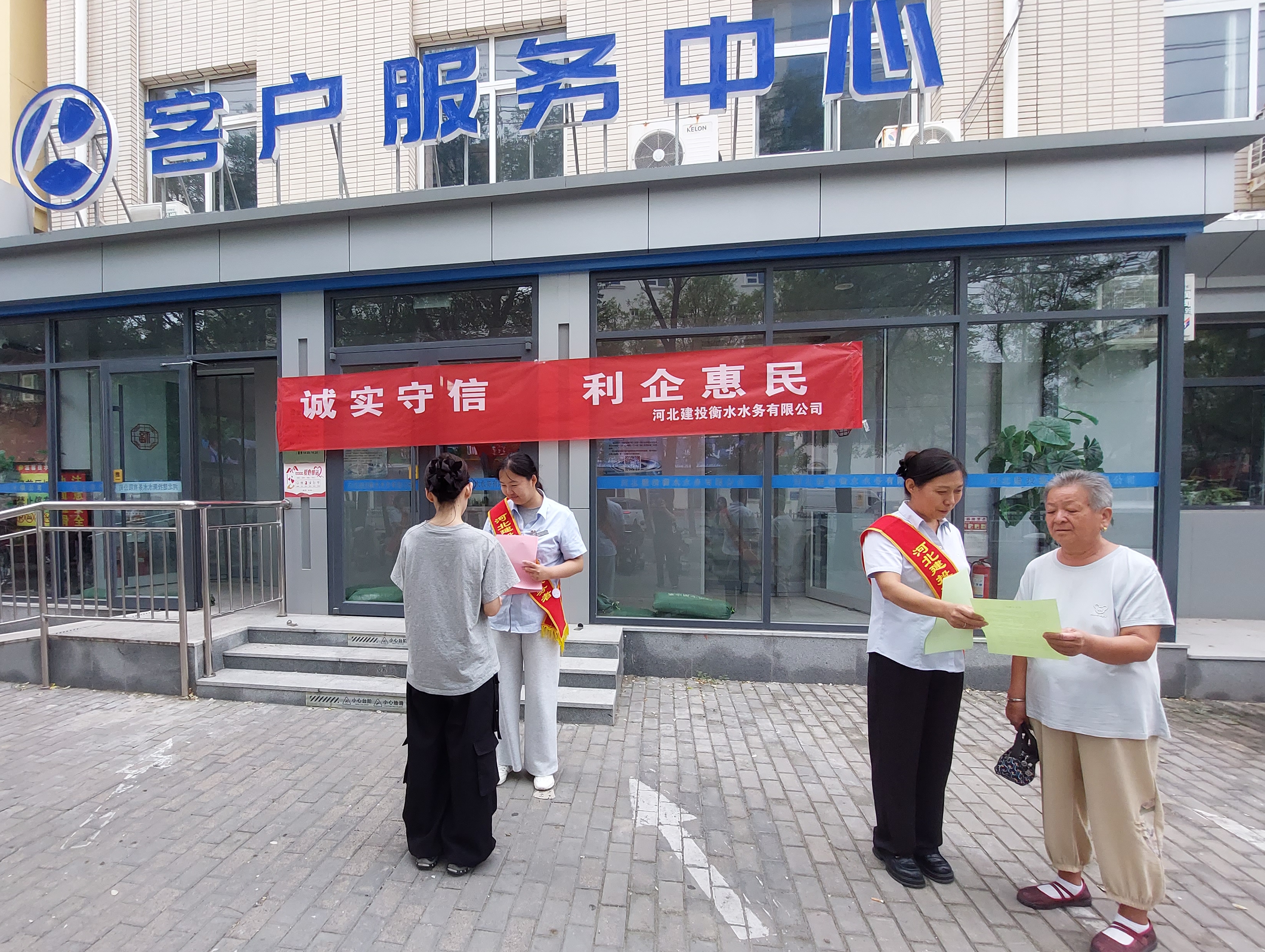 每年9月为我国的“诚信兴商宣传月”。为宣传诚信理念,优化用水营商环境,9月16日,河北建投衡水水务有限公司客服中心营业厅开展了以“诚实守信·利企惠民”为主题的诚信宣传活动,展现出水务行业诚信经营、高效服务的良好形象。