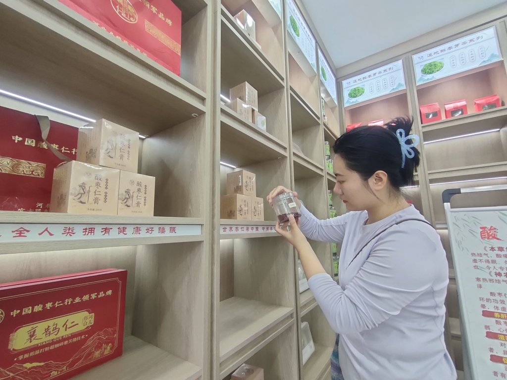 ▲一名消费者正在参观位于邢台市内丘县的中国邢枣仁特色馆。资料片