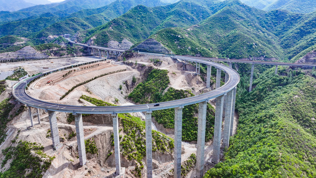 ▲车辆行驶在京蔚高速小五台山大桥上。耿辉 摄