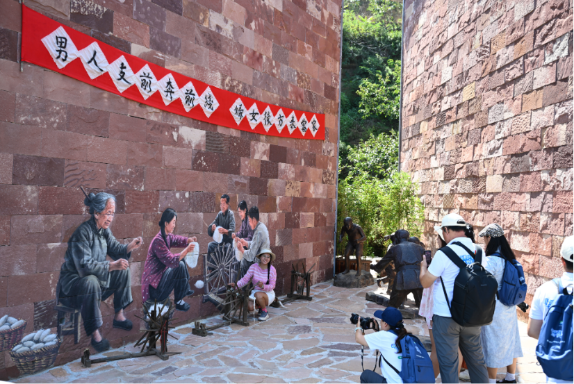 ▲9月10日,游客在邢台市信都区浆水镇“抗大1940街区”打卡游玩。记者 赵永辉 摄