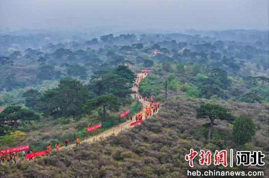 徒步爱好者在易县清西陵松林古道健步行走。 赵骏 摄