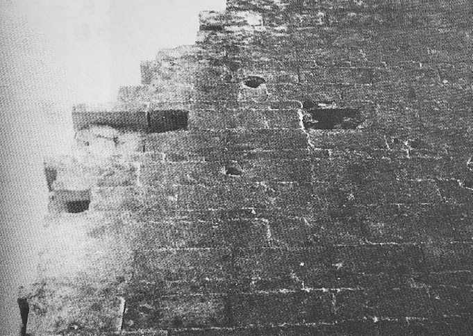 路家庄惨案留在墙壁上的弹洞。1939年3月22日至23日,日军300多人包围冀县路家庄村,攻入村内大肆烧杀,牺牲军民237人,烧毁房屋700多间。
