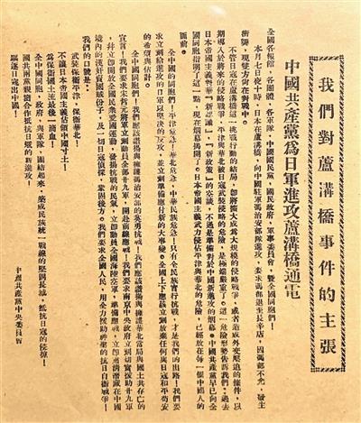 △《中国共产党为日军进攻卢沟桥通电》