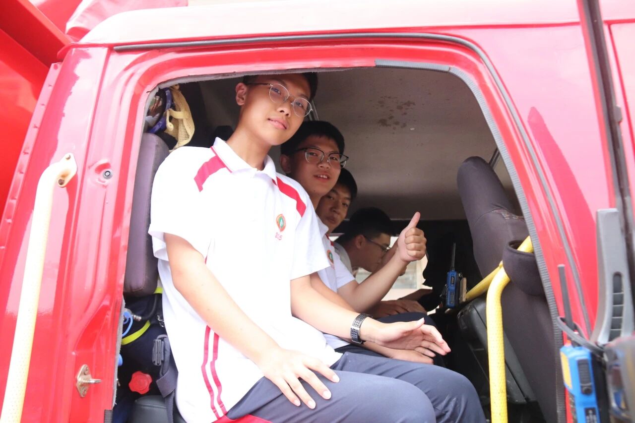活动中,消防指战员们向师生详细展示了灭火器、拆破工具组等专业设备,重点讲解了灭火器的使用方法和技巧。师生们在消防员的指导下,认真练习,熟练掌握“提、拔、握、压”四步操作法。消防员们还现场邀请同学们试穿消防服、佩戴空气呼吸器等装备,登上消防车,沉浸式体验消防员日常工作。同学们不仅感受到消防装备的沉重,更体会到消防员逆行而上的无畏与担当。
