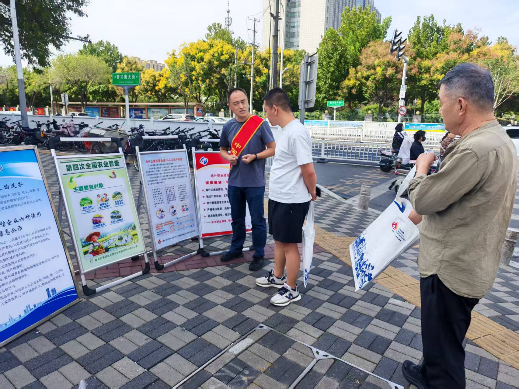 活动现场,工作人员身披“中国统计开放日”宣传绶带,通过悬挂横幅、摆放展板、设置咨询台、发放宣传资料等多种形式,向过往群众宣传解读新修改的《中华人民共和国统计法》、全国1%人口抽样调查以及第四次全国农业普查相关知识,让公众零距离感知统计工作。工作人员还就群众关心的统计问题进行了解答,吸引了众多市民驻足咨询,现场互动氛围热烈。