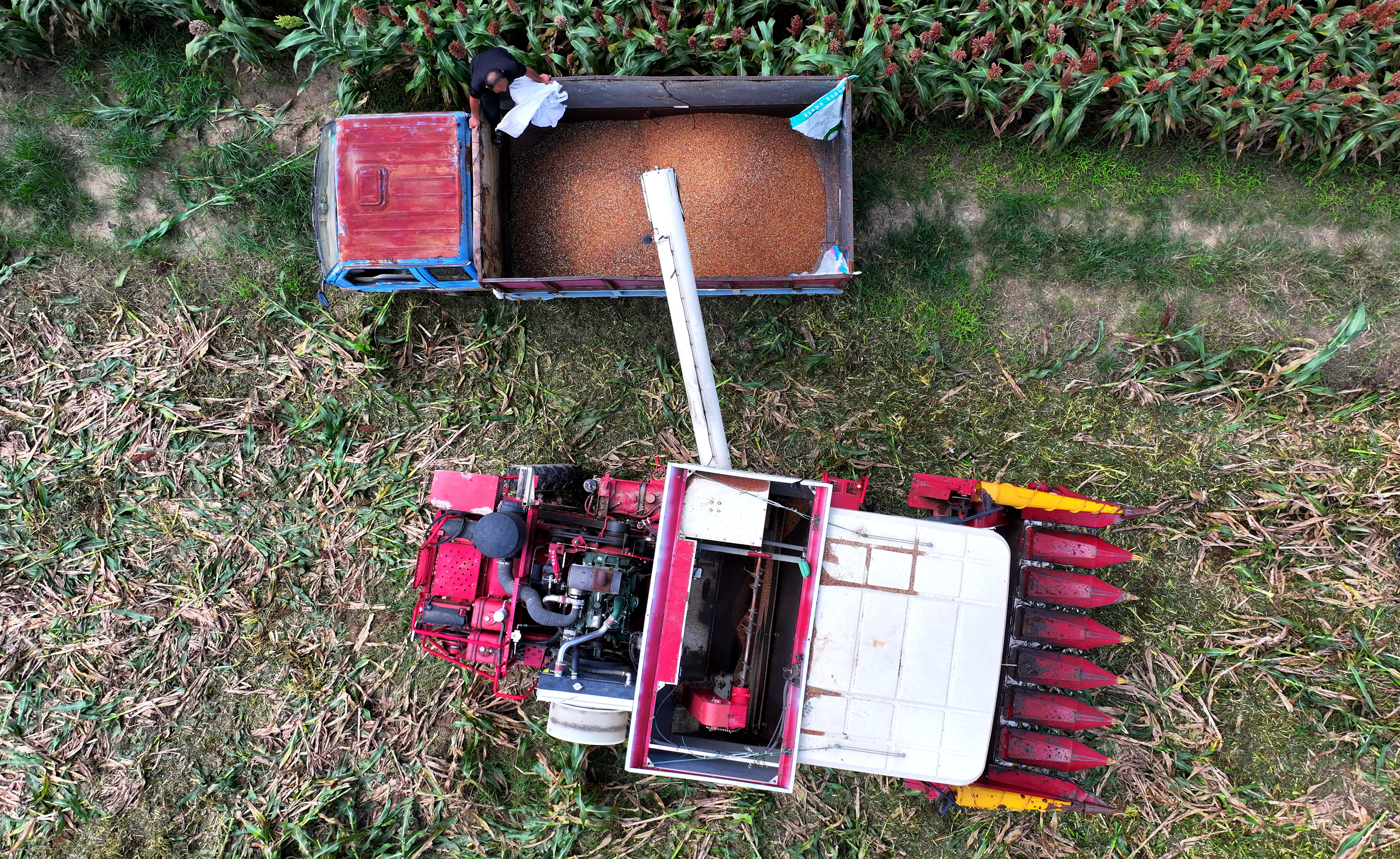 小息村党支部书记息殿平看着丰收景象,欣慰地介绍:“今年村里种了600多亩高粱。种高粱省工省力,还方便村民就近打工,增加收入。种植中采用赤眼蜂防治、无人机打药等先进技术,人工投入少,高粱品质有保障。从目前情况看,今年产量比去年高20%,大家日子越过越有盼头。”