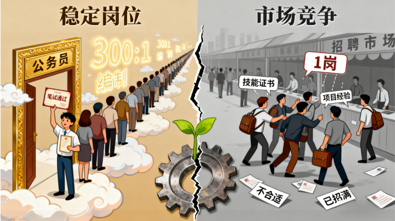 曾几何时,毕业生们对公务员编制等稳定岗位或许还存在着诸多不屑,更倾向于投身充满挑战与机遇的市场化领域,追逐所谓的“诗和远方”。但时过境迁,如今的就业市场风云变幻,越来越多的人开始意识到稳定的重要性。考公考编成为了众多毕业生甚至在职人员的热门选择,竞争之激烈堪称“千军万马过独木桥”。就连社工等以往不太受关注的国家稳定岗位,也吸引了大量求职者的目光。据相关统计,某些热门社工岗位的报考比例甚至超过了100:1。与之形成鲜明对比的是,失业人数在部分行业和领域呈现出上升趋势。一些传统行业受市场环境、产业升级等因素影响,不得不进行裁员以维持生存。而在就业市场上,求职者们为了一个岗位往往需要经历多轮面试,与众多竞争对手展开激烈角逐,即便如此,成功获得offer的概率依然较低。