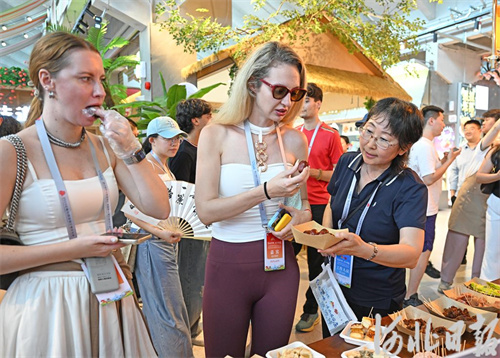 9月14日,外国游客在石家庄织音1953品尝当地特色美食。