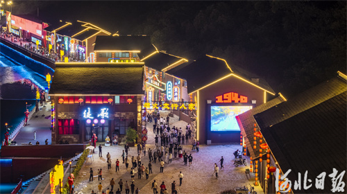 9月15日晚,游客在邢台市抗大1940街区打卡游玩。