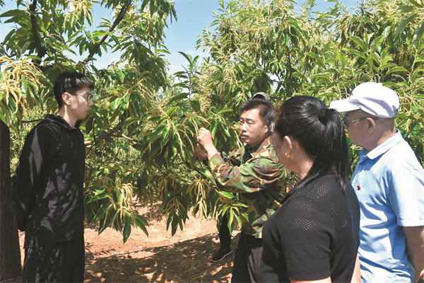 刘建华为栗农讲解板栗树管理知识。
