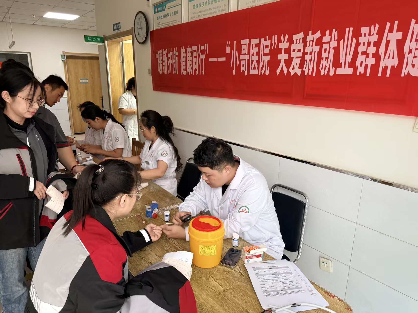 “新就业群体是城市运转的‘毛细血管’,‘小哥医院’的成立就是要为他们提供专属医疗保障,传递城市温度。”县委社会工作部相关负责人在揭牌仪式上表示。县医院相关负责人介绍,医院将推出“两站五优五免”服务体系,包括一站式服务平台、便民医疗驿站和优质医疗流程、先进模范优待、团建优惠、健康管理与心理门诊优惠,以及免费团检接送、健康档案建立、体检报告解读、义诊和健康培训等服务。“我院高度重视此项工作,成立了专门团队,设立一站式服务区,为他们提供便捷就医环境和针对性健康指导。”景县人民医院体检科负责人介绍。